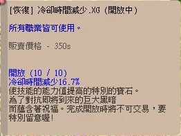 [恢復]冷卻時間減少 .XG (10月 16.7%)