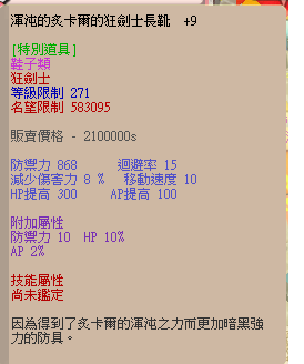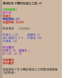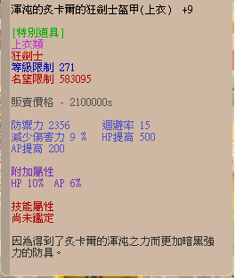 N9渾沌的炙卡爾的狂劍套(頭上下鞋) 40%HP