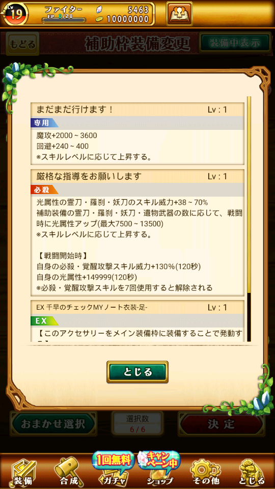 帳號內還有很多其他究極裝備可以放輔助欄
