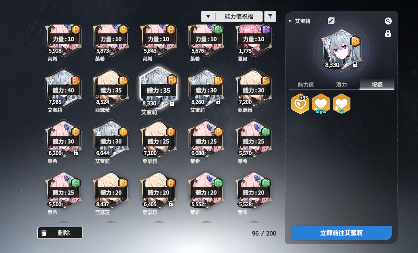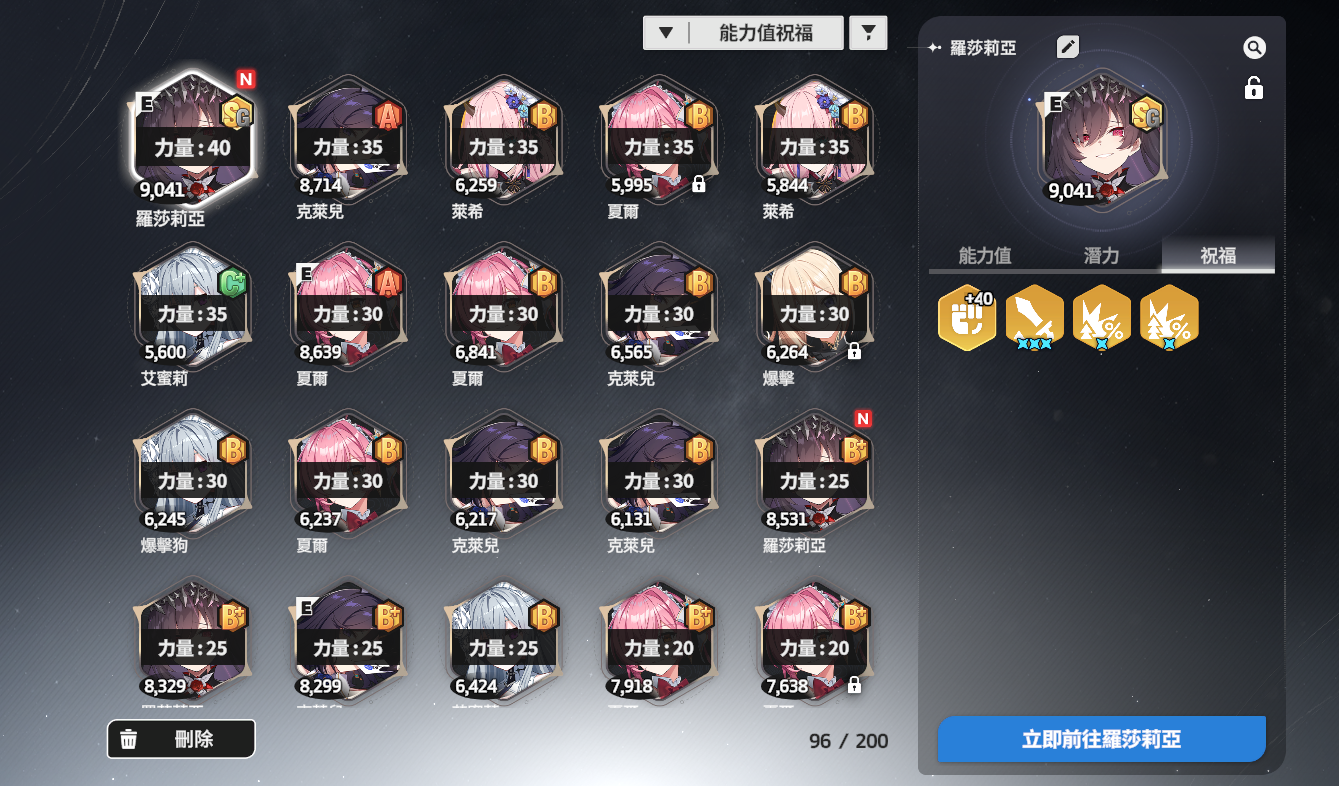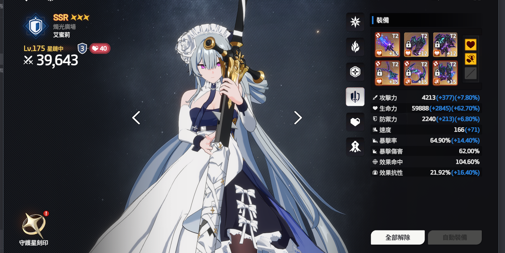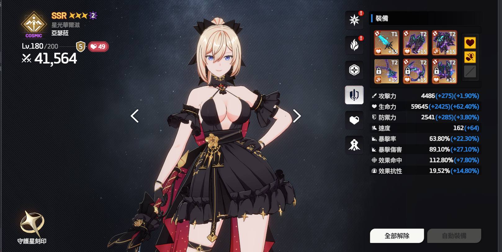 如題 阿爾卡娜缺一張水兔暴擊卡就全畢業 看要不要用PT換 攻擊系的卡片全齊 萬用突破石還沒用 有買雙月卡+通行證 通行證卡片已取得 種馬有40+35的 羅沙檔案詞條更有洞察天賦(+4.5暴) 可以帶出去給輸出點
