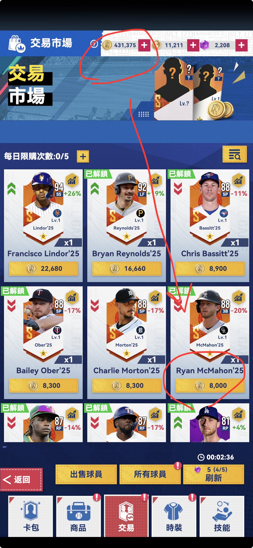 1.先發9人、先發投手都SS卡;共21張SS卡;幾張已8星