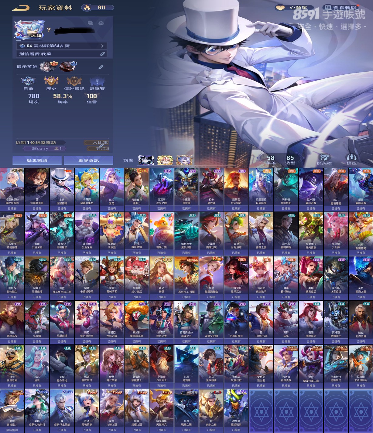 【Garena帳無綁無連、鑽石、V2、58英、85造】 基德 釘崎 卡芬尼咖波皆全套