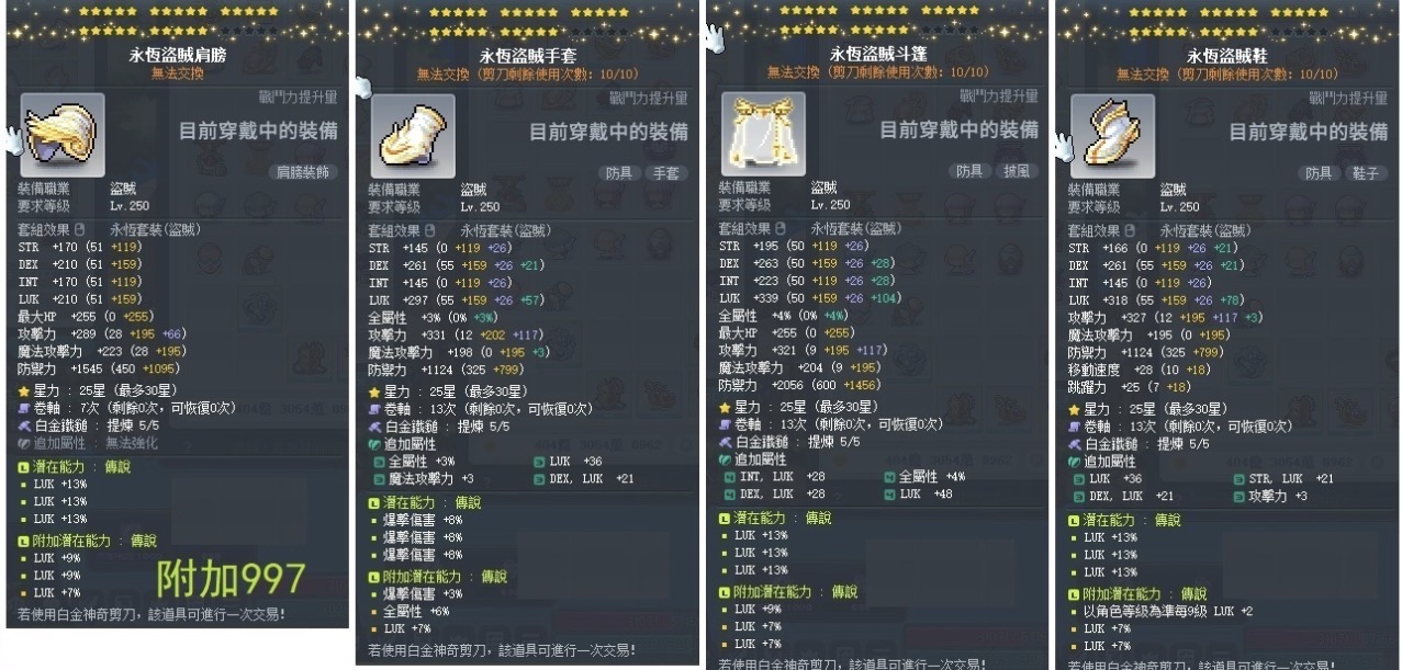 道具 【夜使退谷】 頂%幸永恆上衣/褲子/997肩膀/四爆手/永恆盜賊斗篷/永恆盜賊鞋/-7CD賊帽