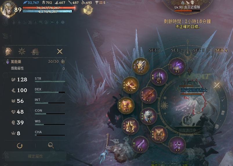 等級89.17%、6粉、15金、【最高攻命517/718】【防762、減傷337、抗暈224%】、1金滿紫技、火/水眼滿分、5刻印紫裝、收藏52.91%、3紫加護、