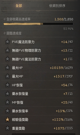 【總收藏】: 52.91% (近傷命84/102、STR28、物防+147)