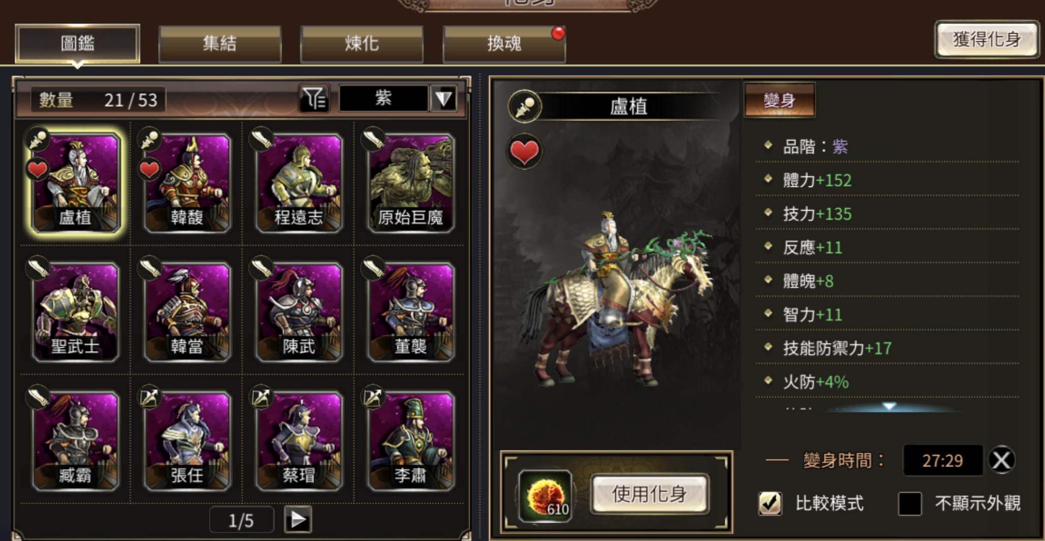 化身:盧植 21紫 3紫魂未收