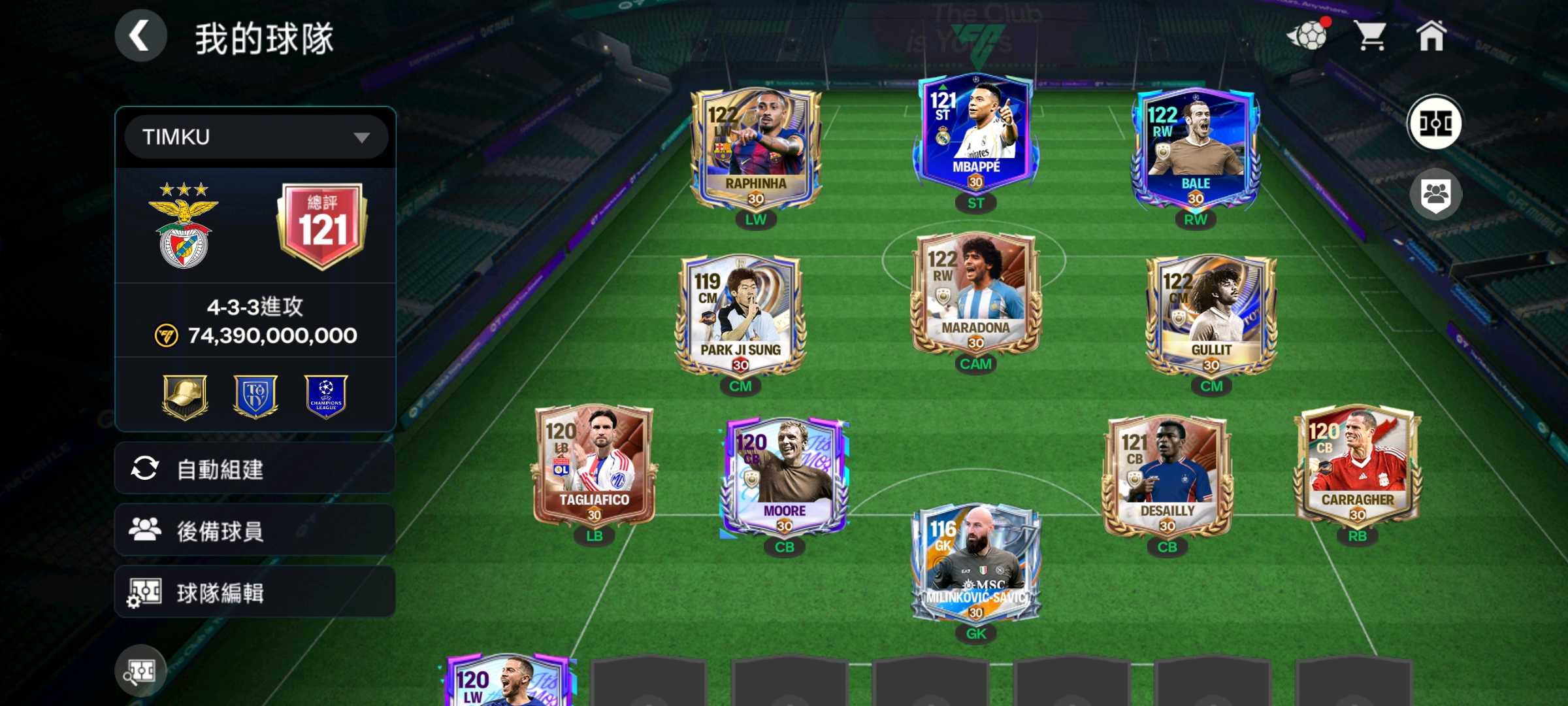 有170月卡 bale gulit maradona rapha 等好用球員