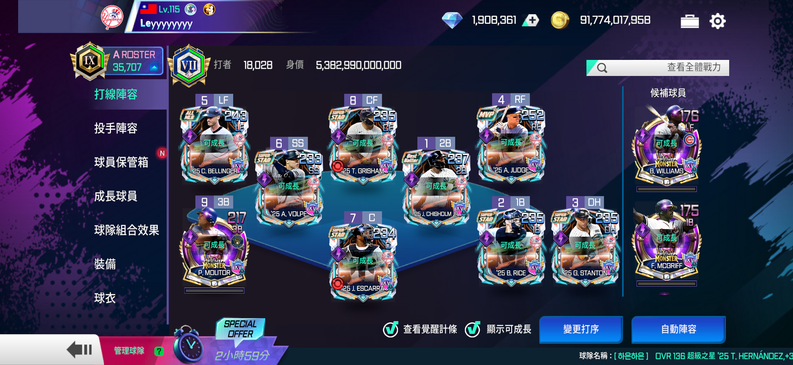 【115等】 🌟頂洋基35707整隊超級巨星滿🌟資源多