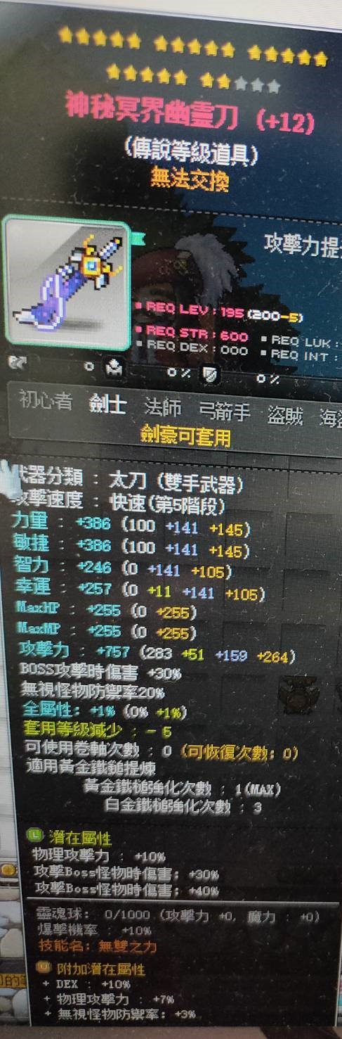 武器主職用潛:70%BOSS10%物攻(強力職業主流主潛能)