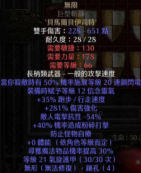 無限無形巨型斬鐮(281增傷 / 54-抗 = 500T
