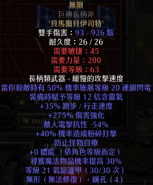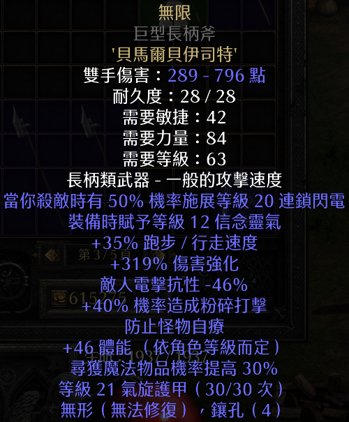 無限巨型長柄斧(319增傷 / -46抗 = 600T
