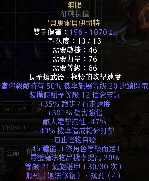 無限征戰長槍(301增傷 / -47抗 = 500T