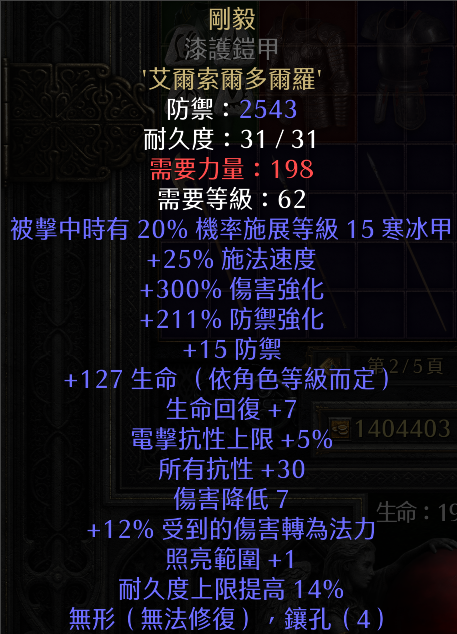剛毅無形統鎧(1.25血 / 28抗 = 600T
