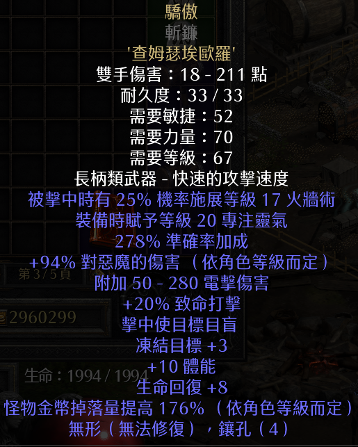 驕傲無形斬鐮(20靈氣/278準 = 600T