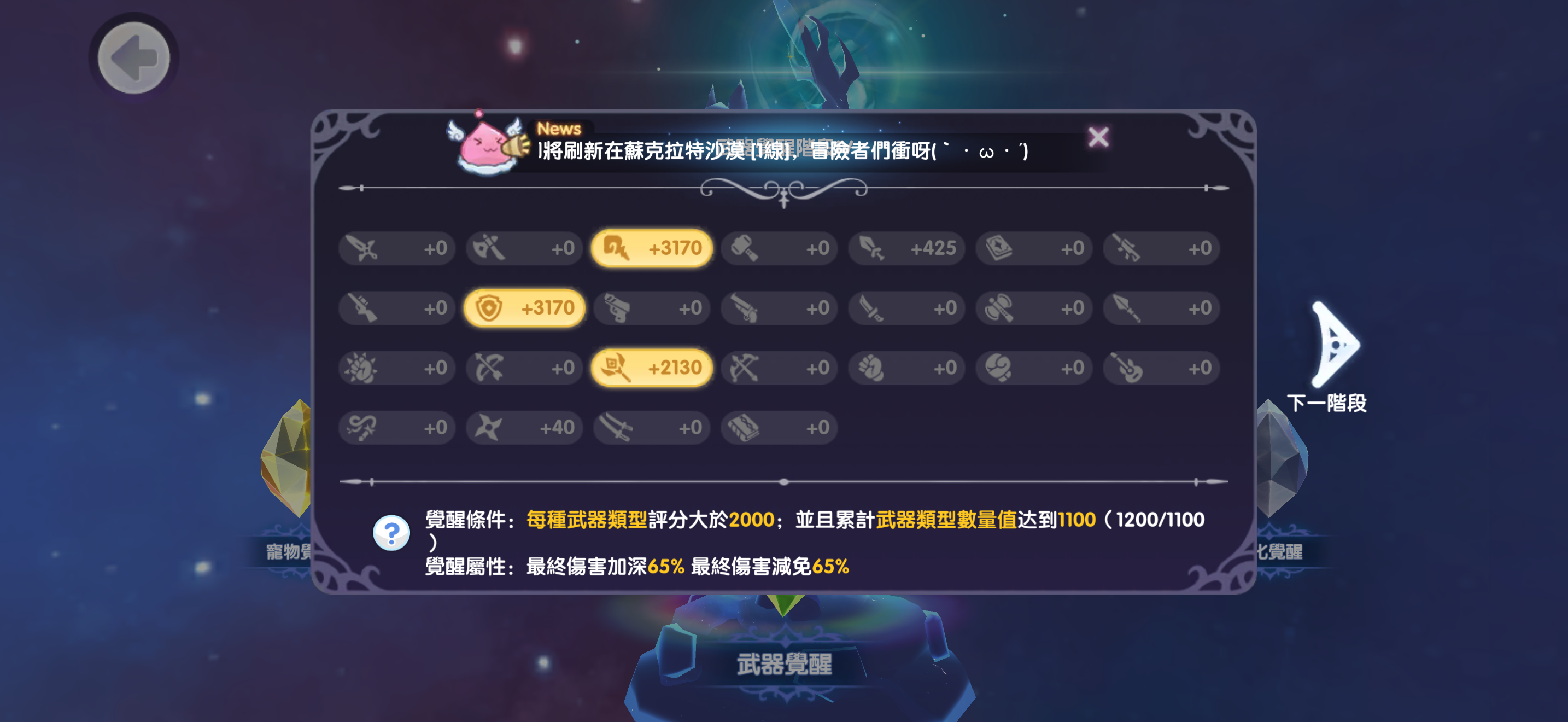 武器雙手武(蜜蜂杖改四)+12 開覺醒65趴