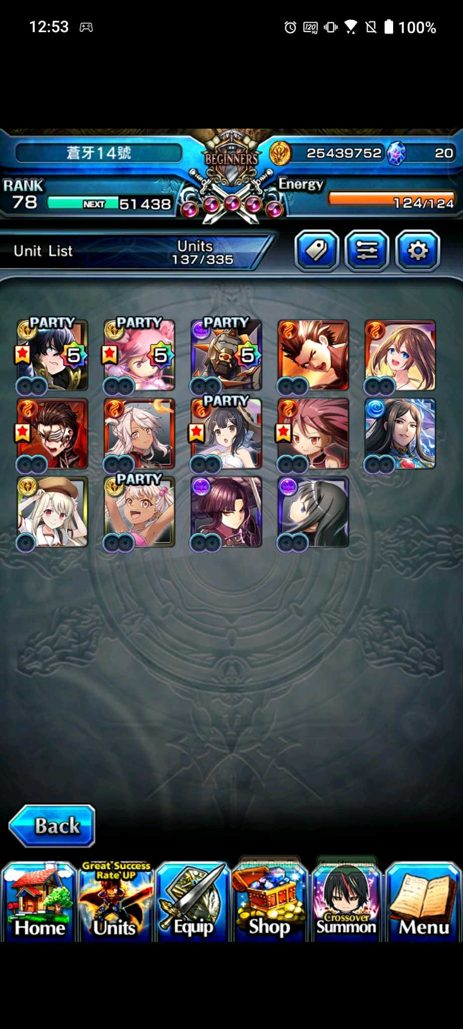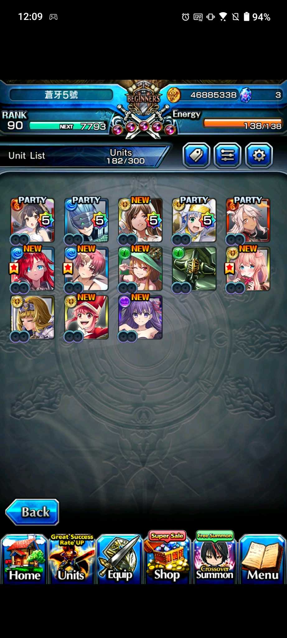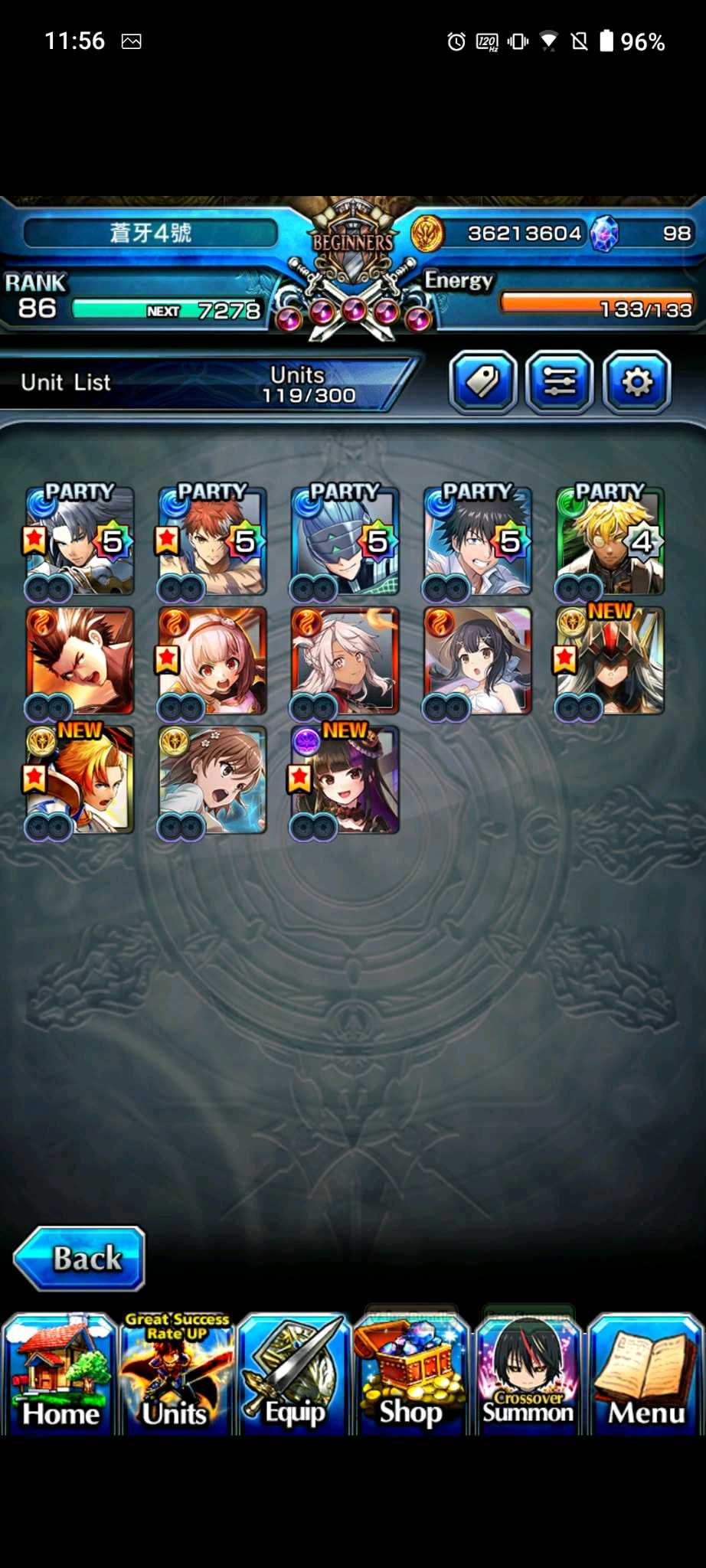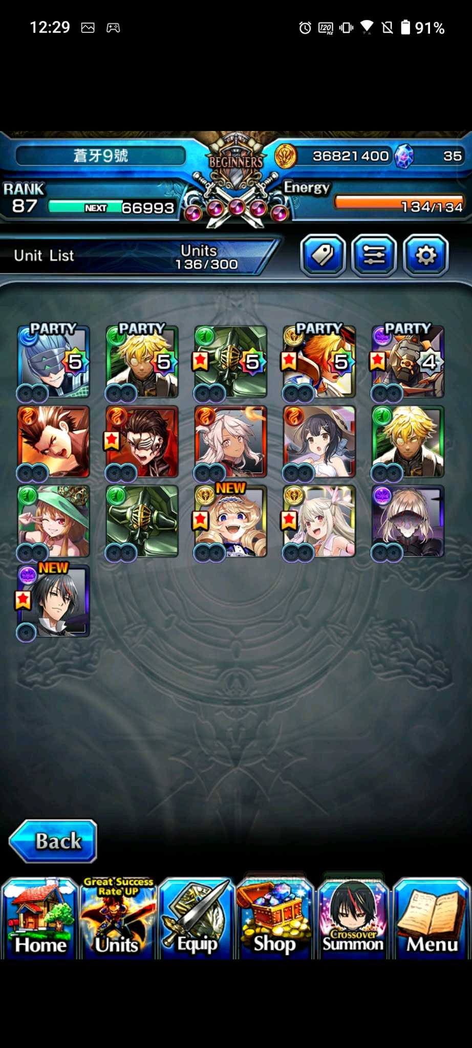 【100等】日版各種高練度帳號隨便賣,價格可談,有些已售,第二組元旦跟合作更新,大部分有新角