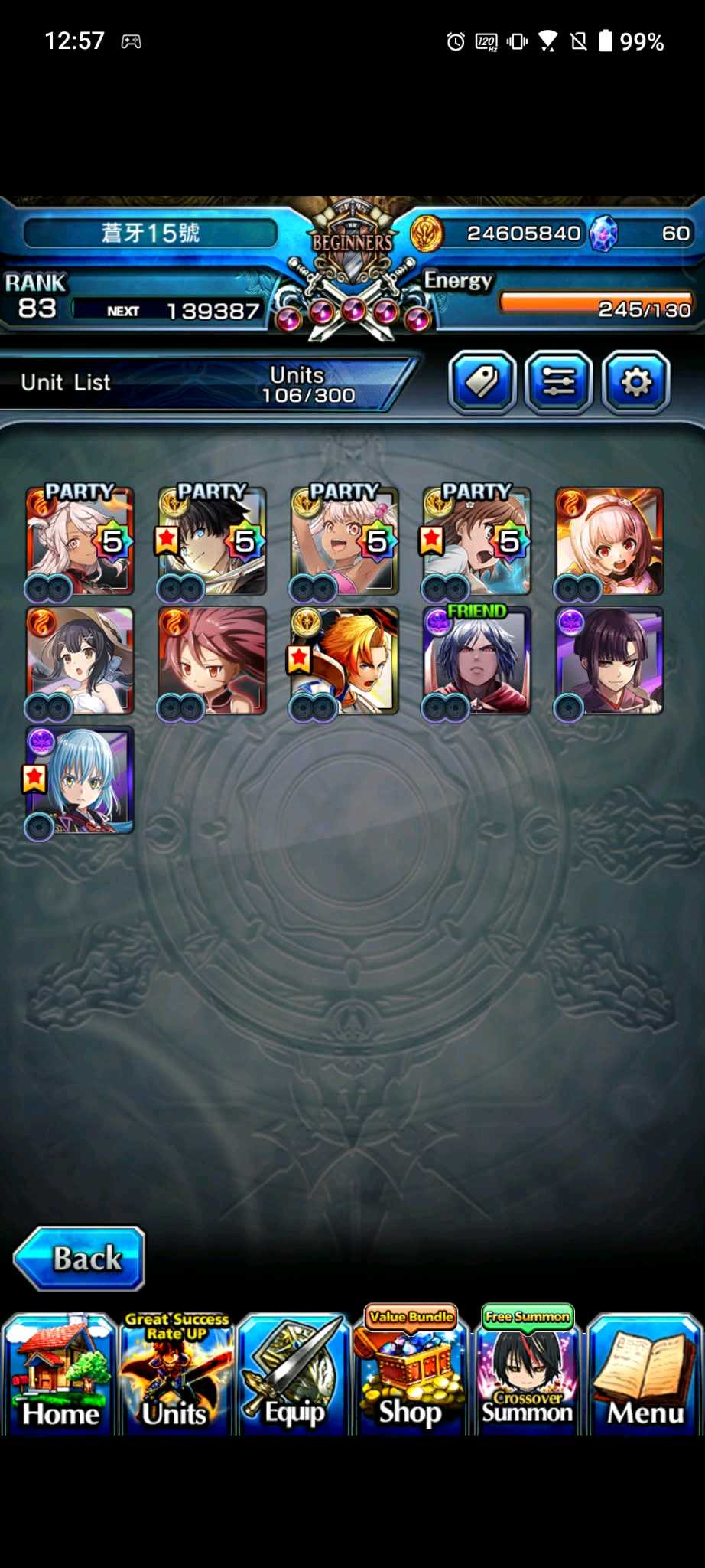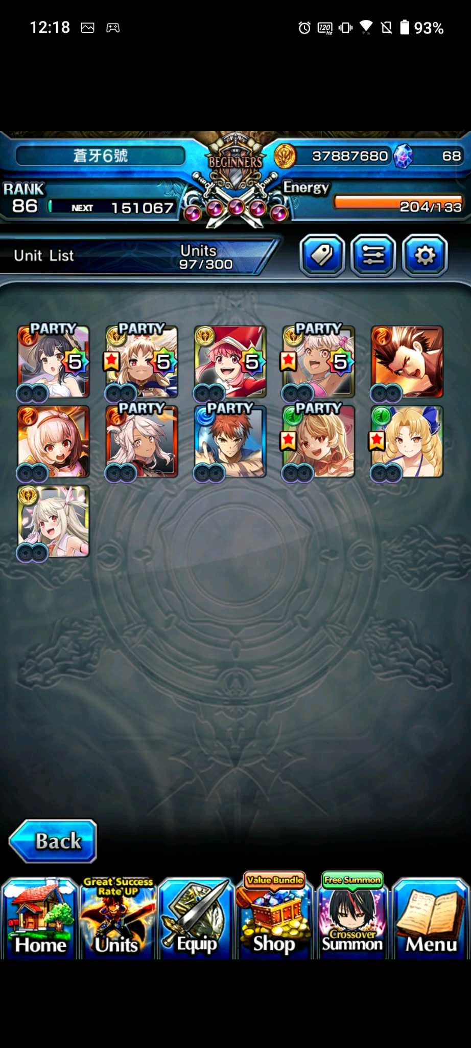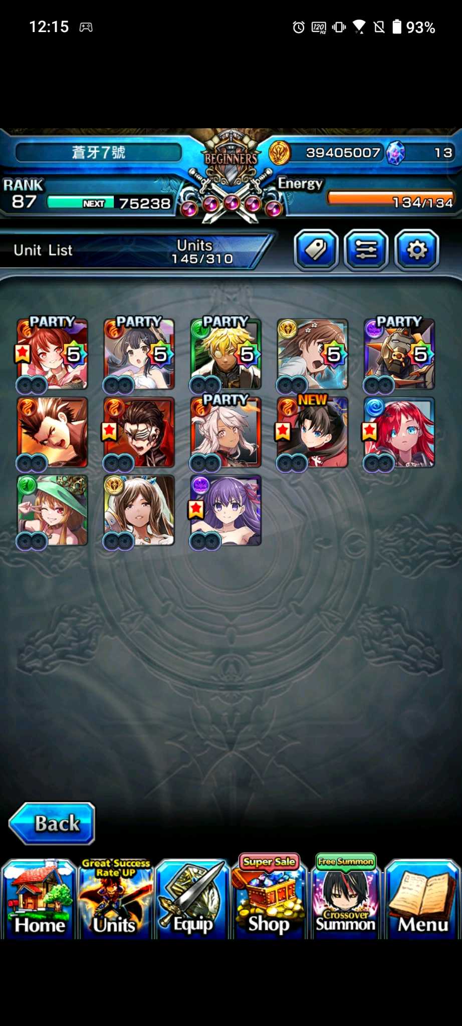 【100等】日版各種高練度帳號隨便賣,價格可談,有些已售,第二組元旦跟合作更新,大部分有新角