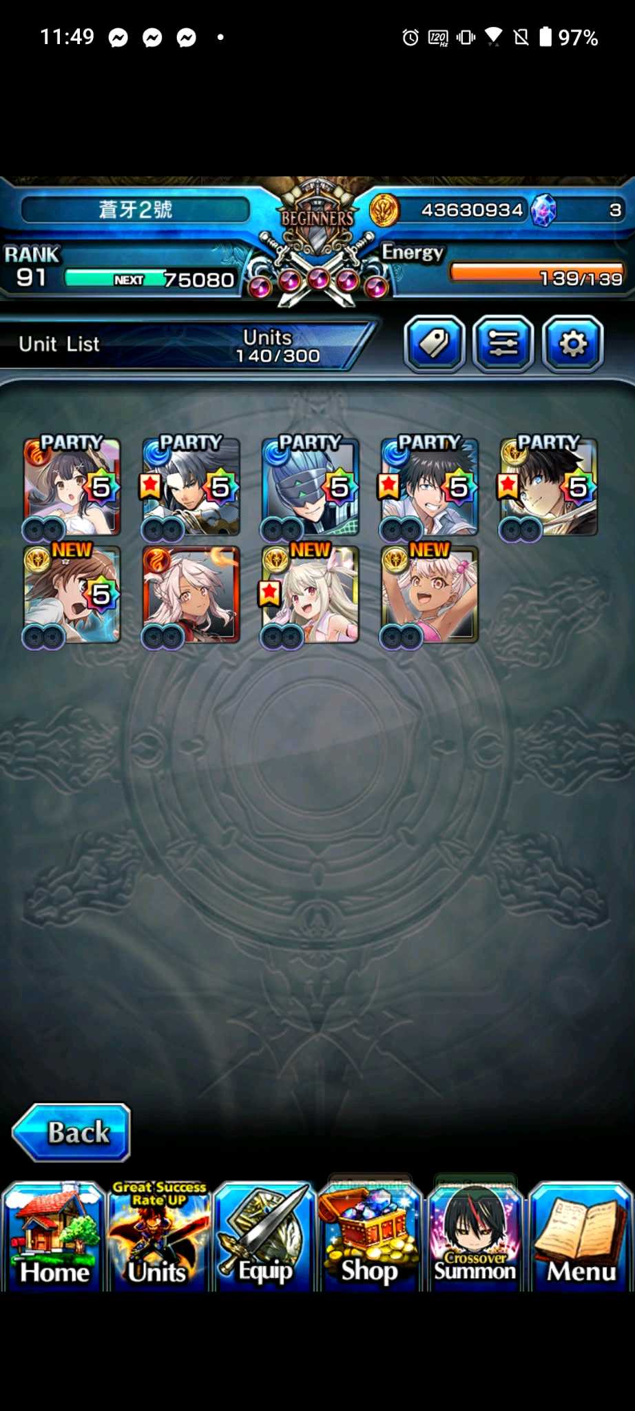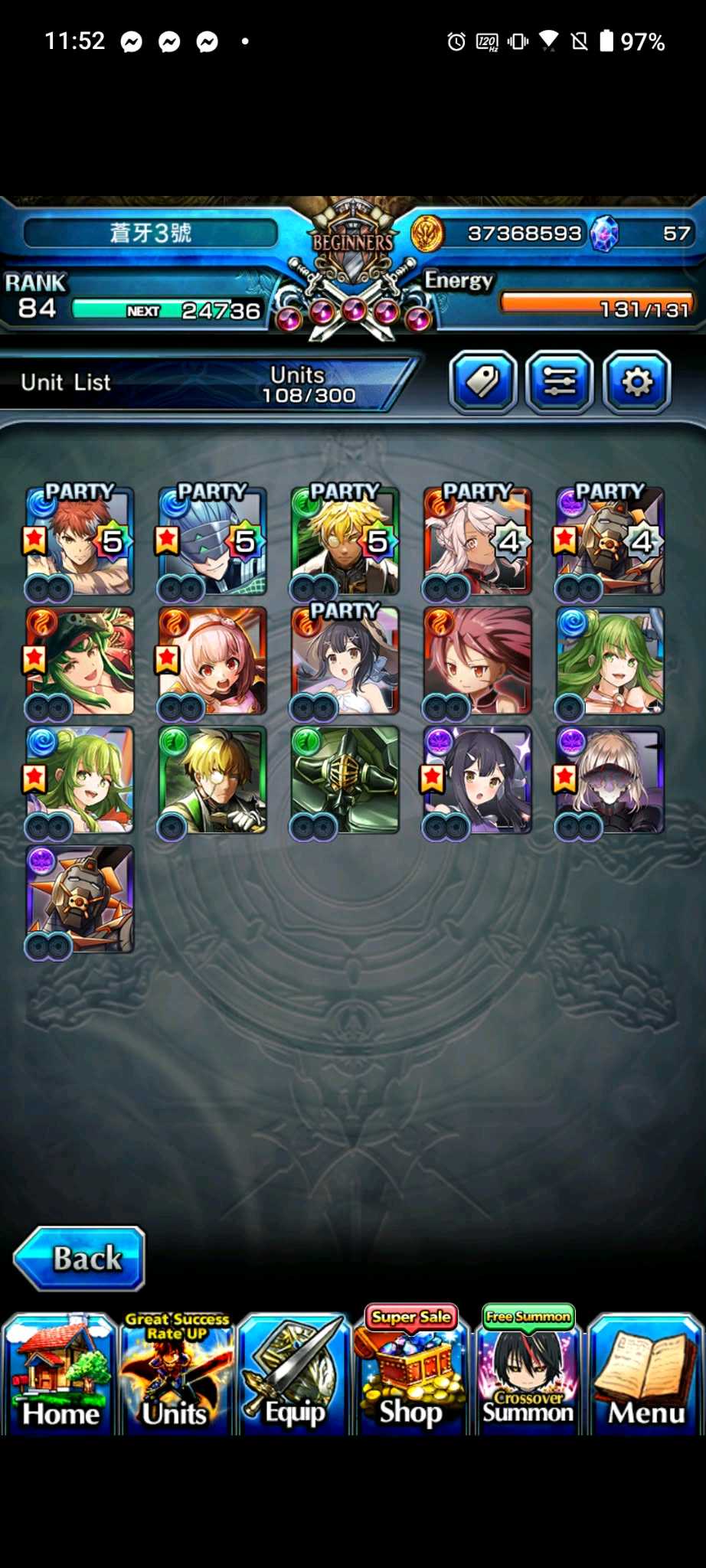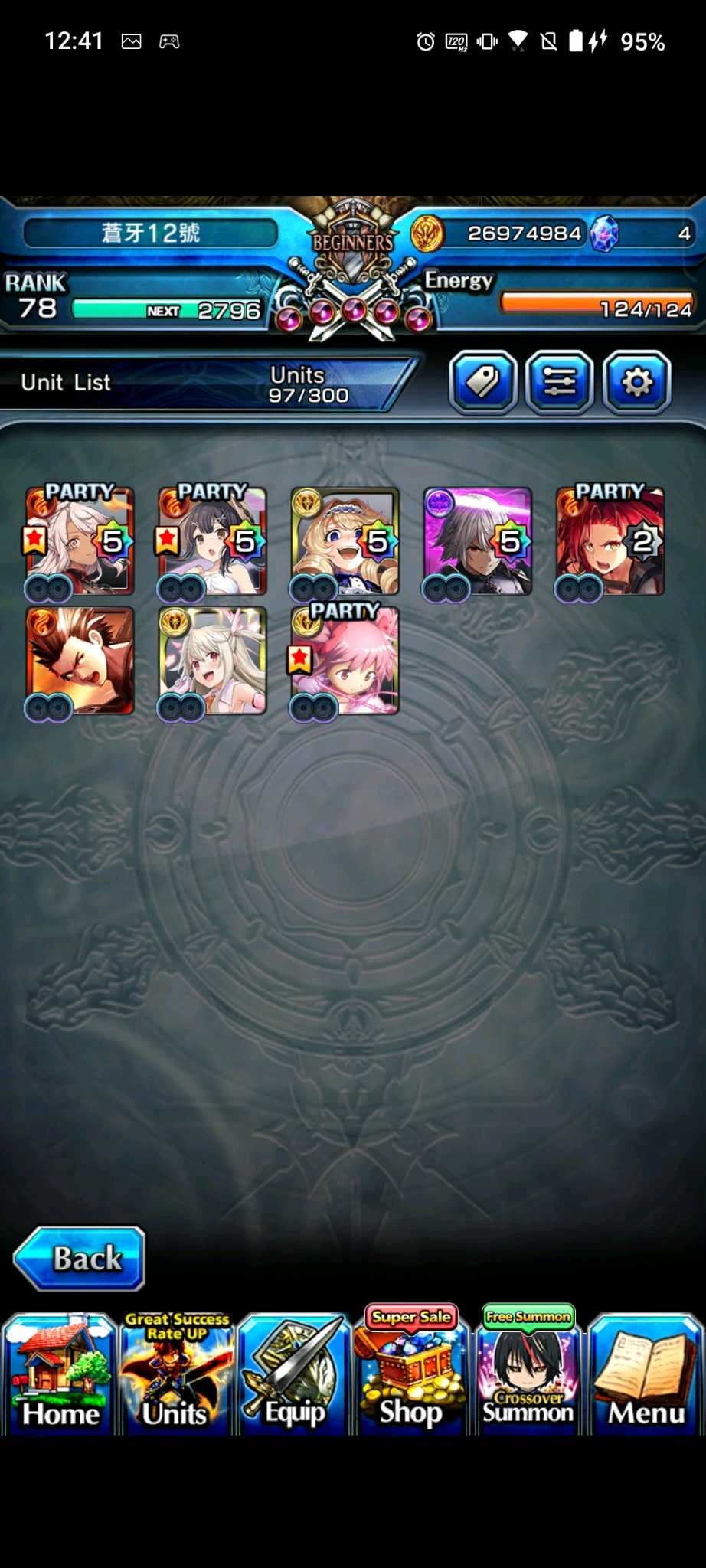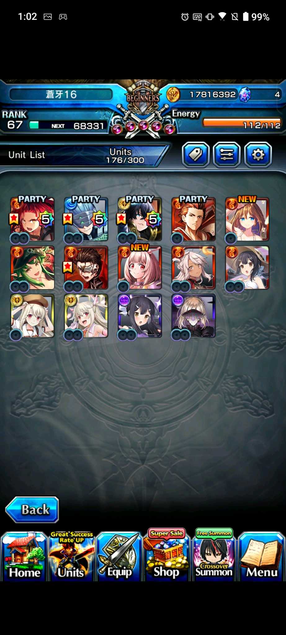 【100等】日版各種高練度帳號隨便賣,價格可談,有些已售,第二組元旦跟合作更新,大部分有新角
