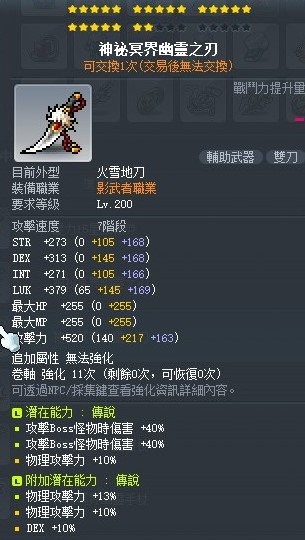 武器主職用潛:80%BOSS10%物攻(次頂職業主流主潛能)