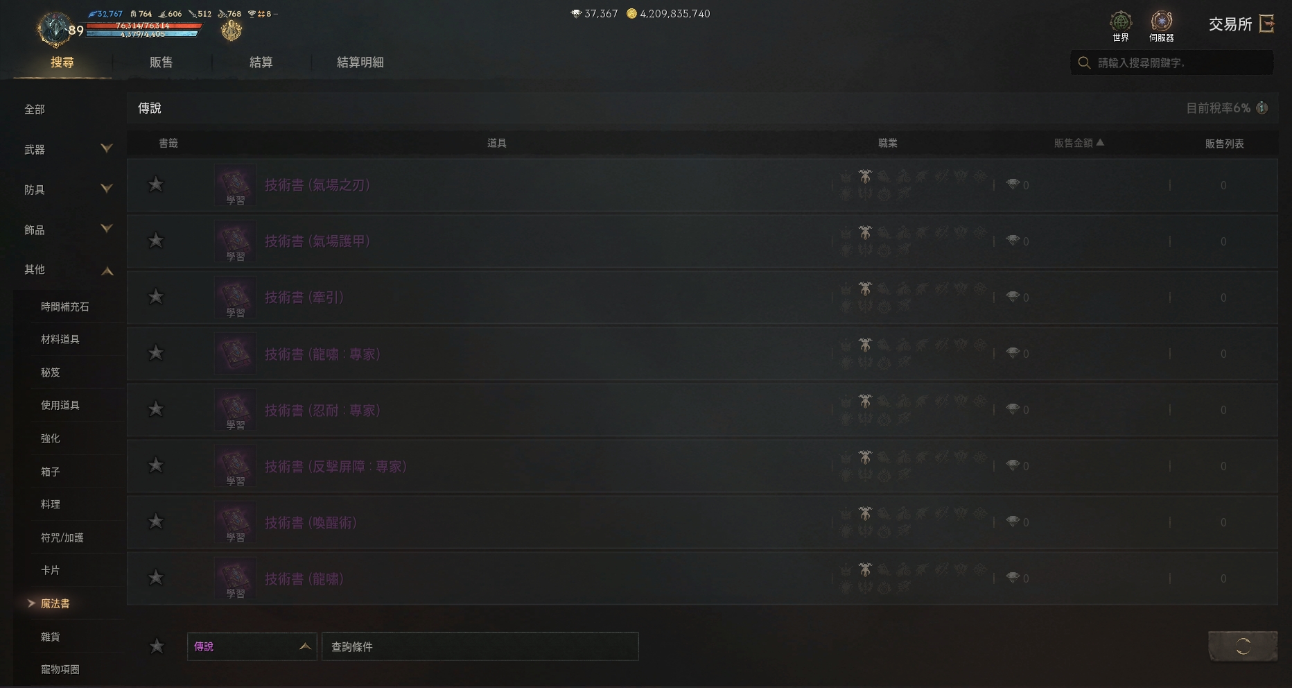 ●技能● 1金技+6紫技+1獨特紫技(只缺最新出的精通紫及1獨特紫技)