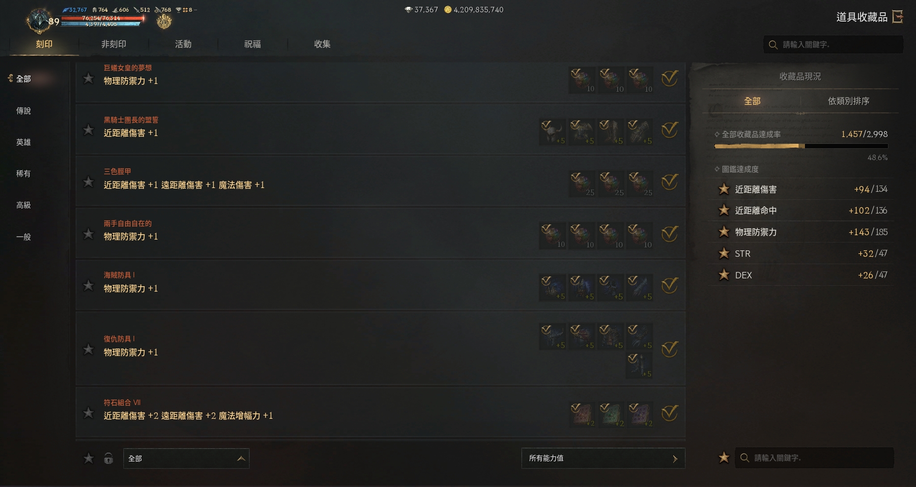 ●收藏● 極完整近戰收藏近50% 近傷94 近命102 物防143 STR32 DEX26