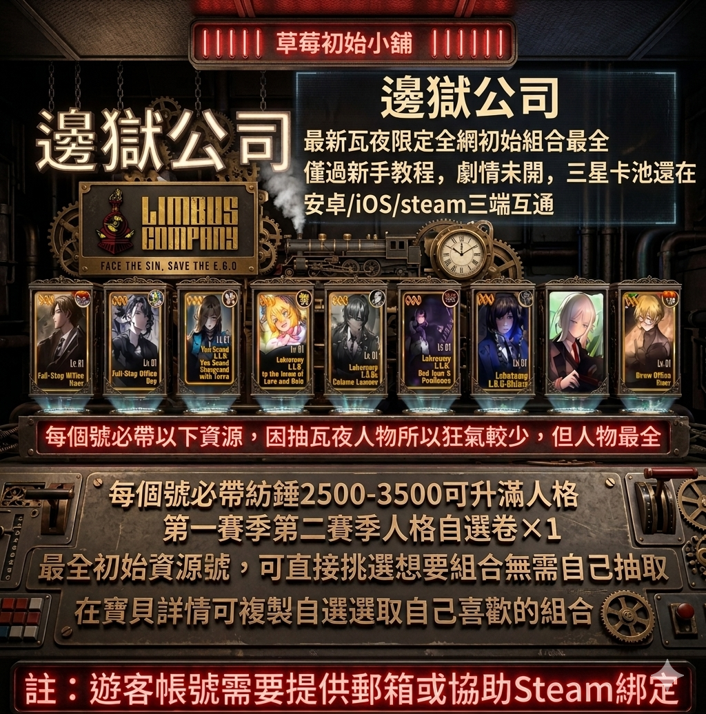 ※[草莓]各遊戲官方對登入環境(如:IP變動、網路工具)的偵測機制不同,建議您登入後先穩定使用。我們會盡力確保帳號品質,但也請買家理解,任何遊戲帳號在不同環境下皆存在極低機率的系統誤判風險,下單前請知悉喔。