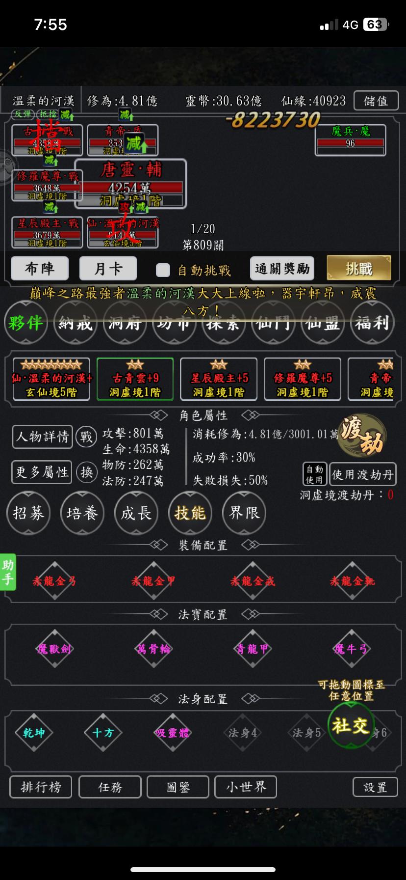 【1000等】 1041服主角戰力2000萬,已2開,等金角 幾乎全紅裝,有橘色道服