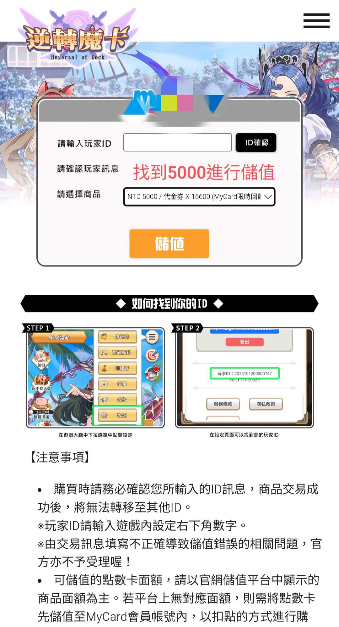 只能在逆轉魔卡儲值