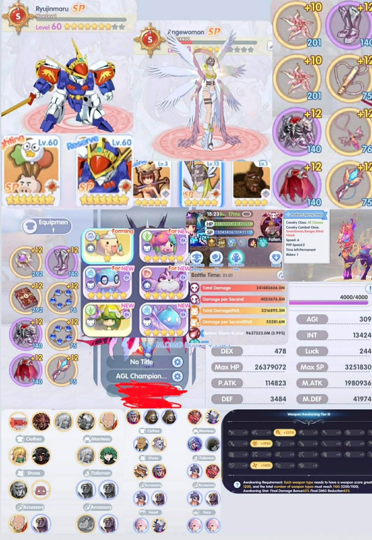 寵物:飛天豬7星/龍神7.8星(差五下,紫罐已備齊)/天女五星