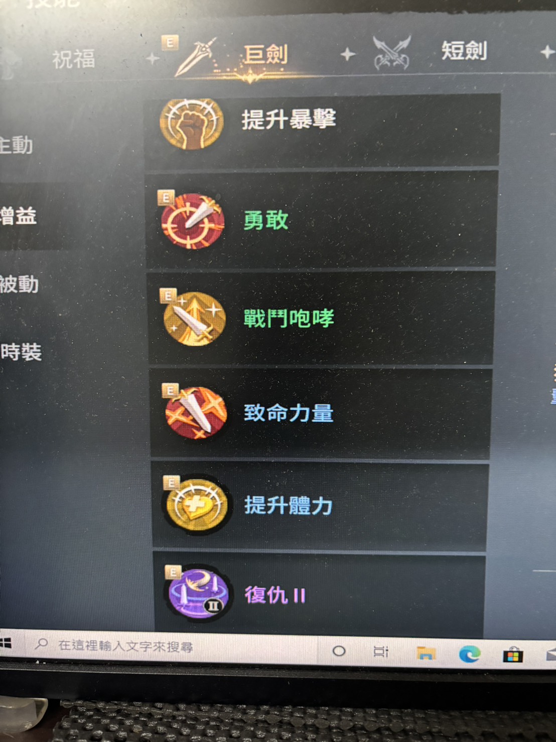 副職業:巨劍(有學金技能在圖片上)