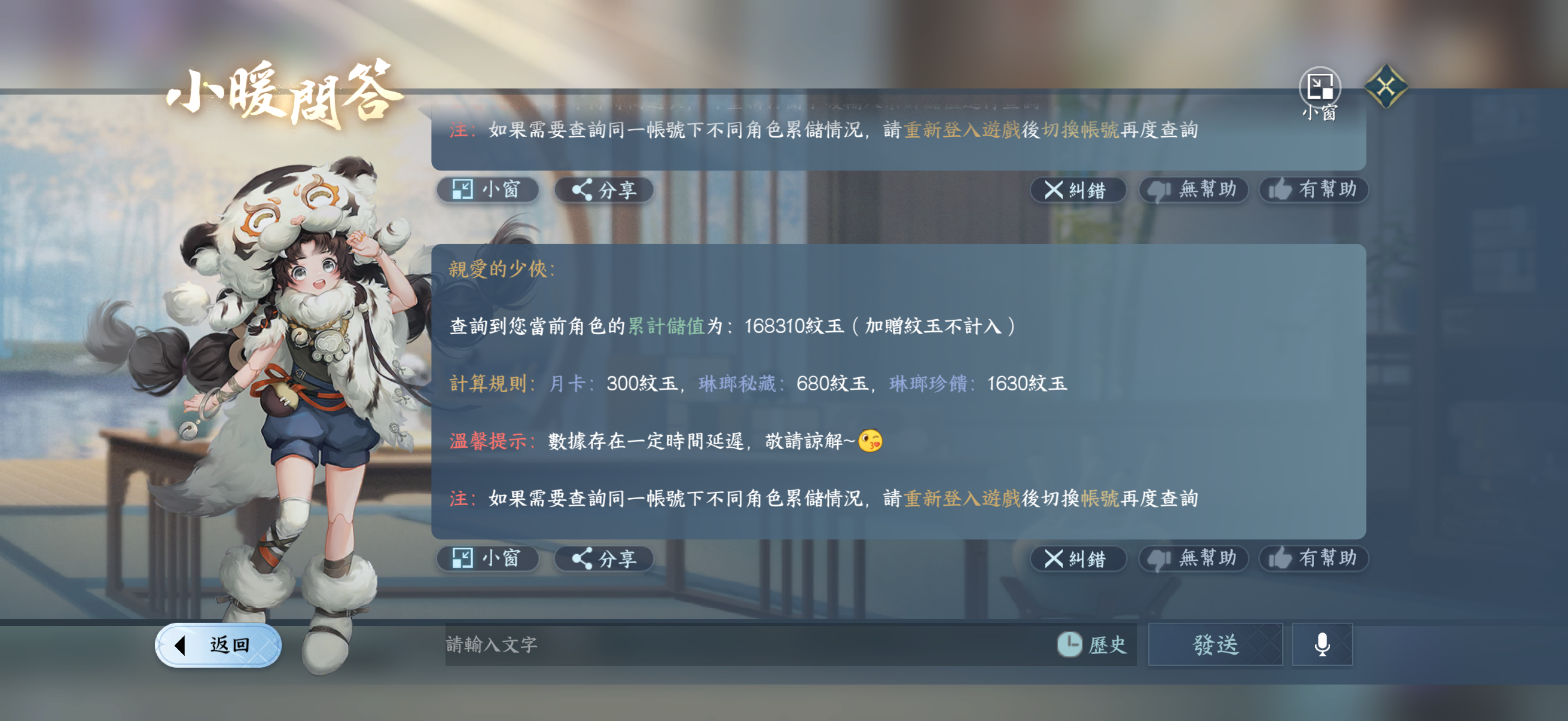 用心經營,不管天問還素心都已經配置妥,pvp/pve都沒問題,按頂規追求,絕技群俠都有,接手可馬上無縫接軌,秒傷水平以上