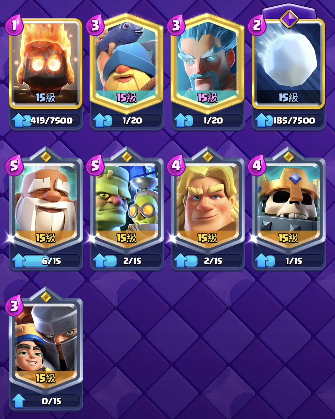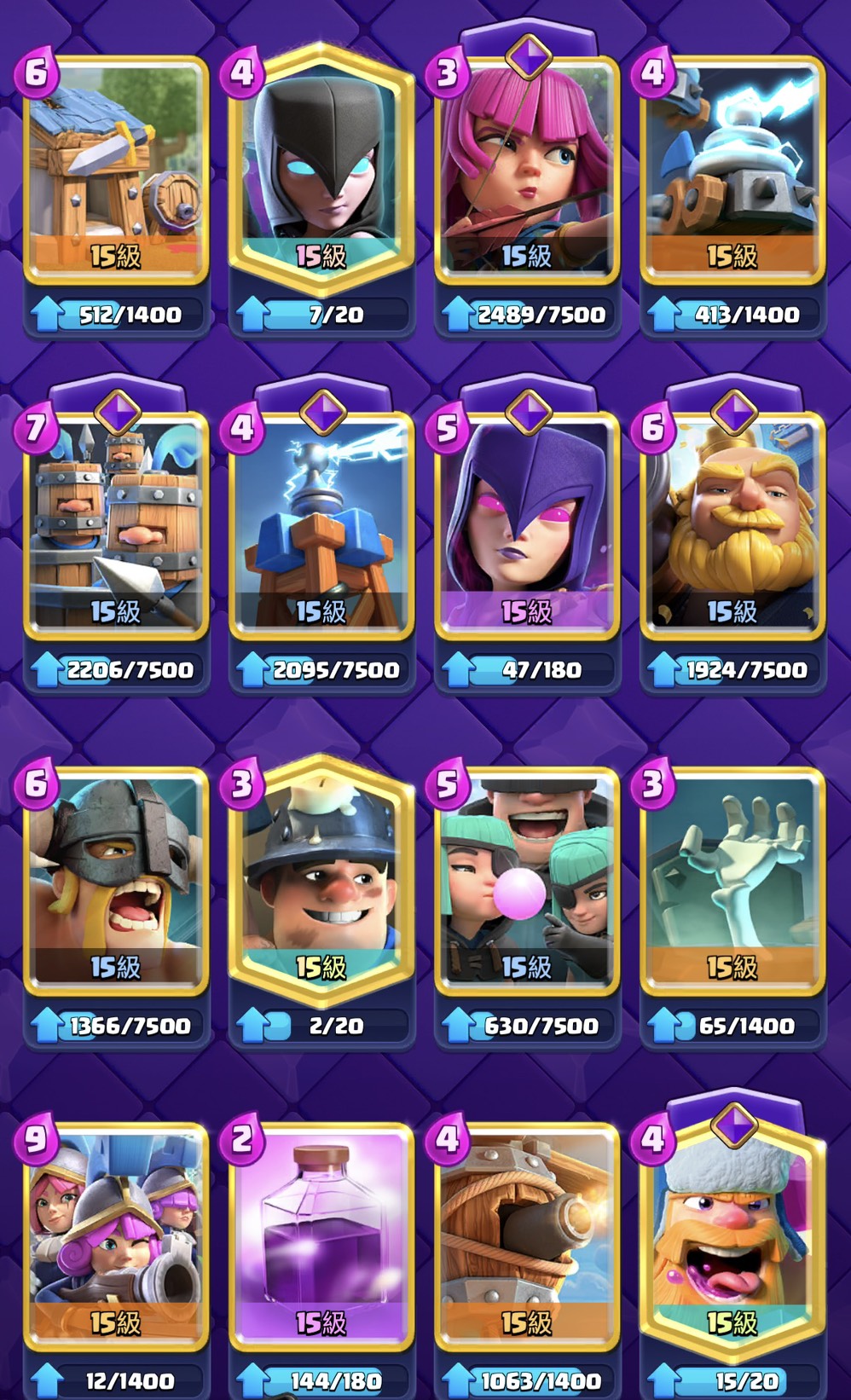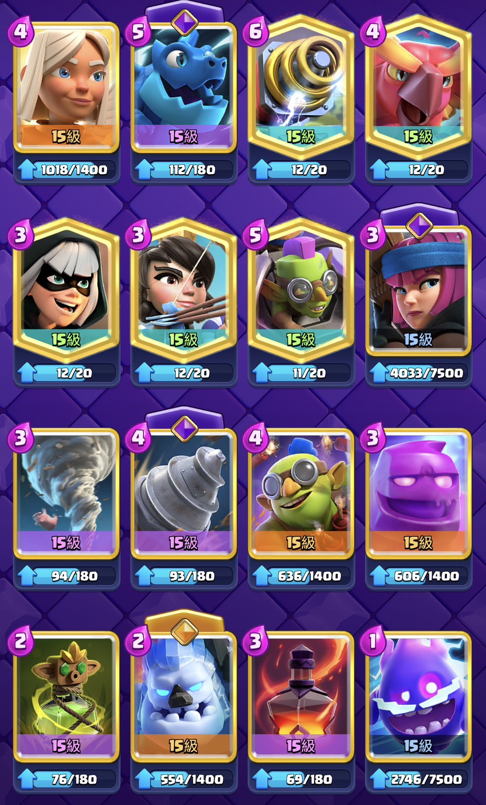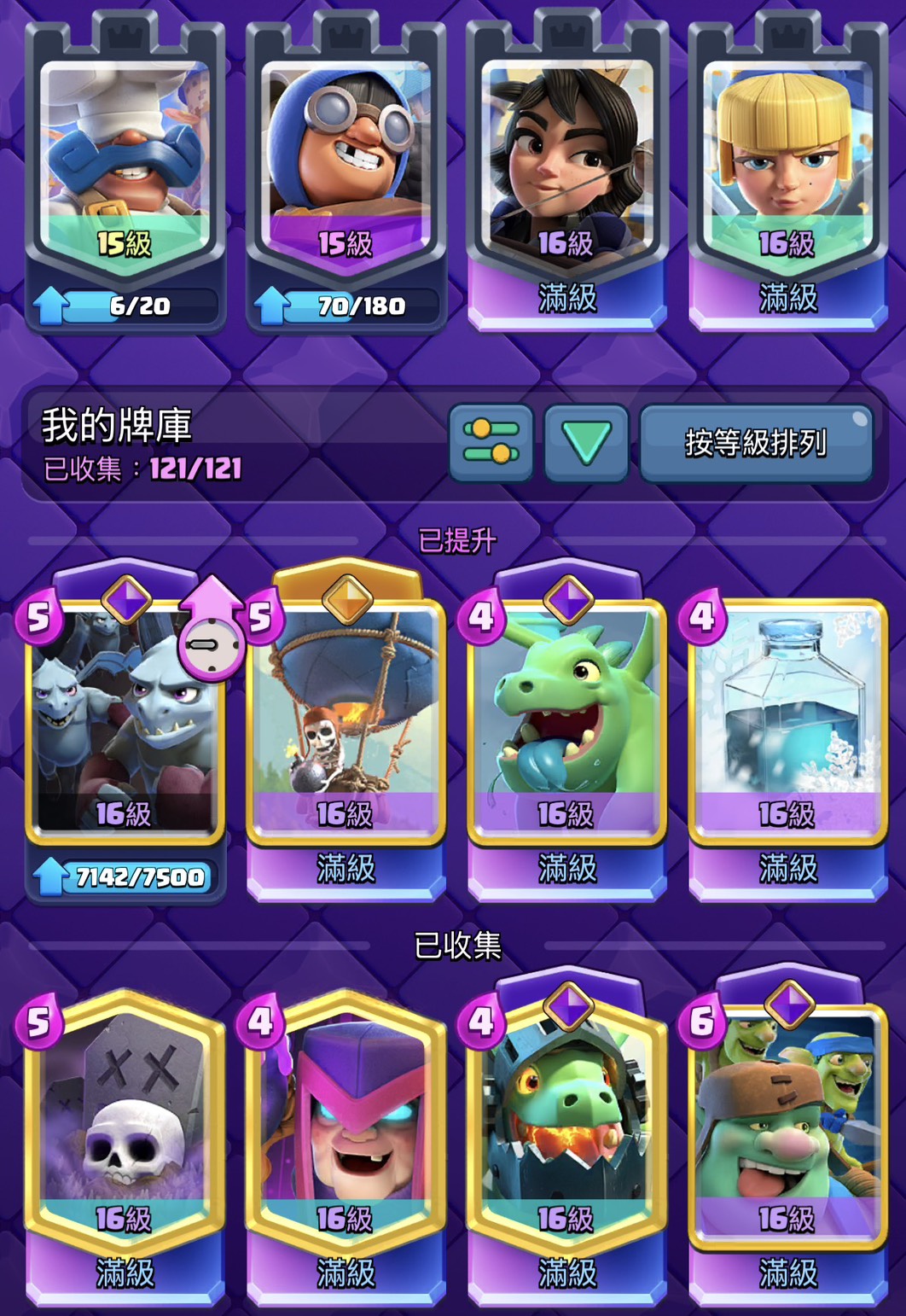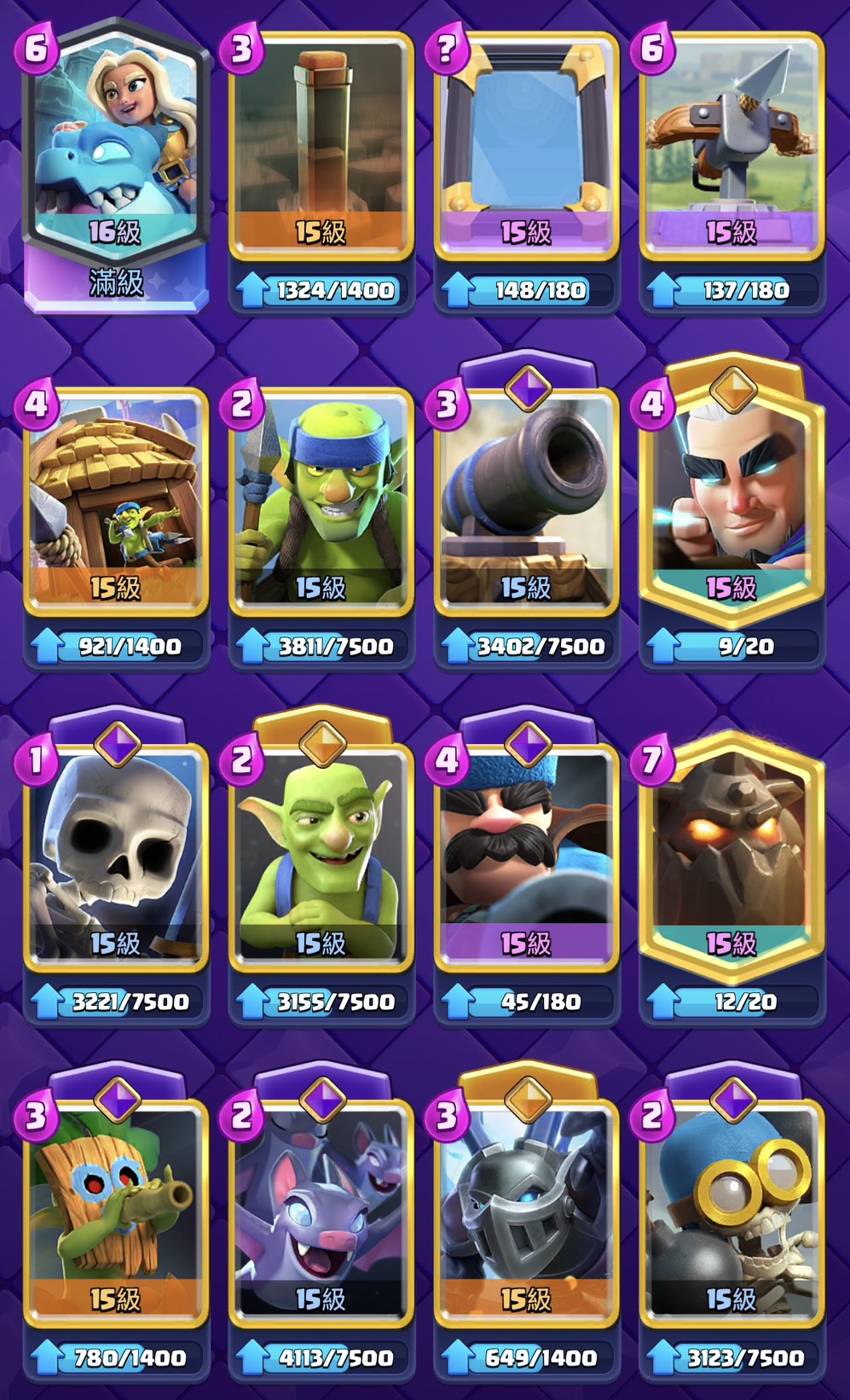 現階段 62張滿16等 另外有11張滿卡 缺錢升等
