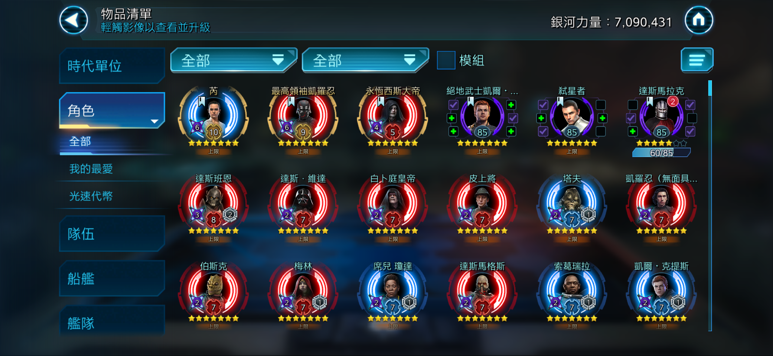 【85等】 星際大戰銀河戰將3銀河傳奇多旅程角色2征戰角色號