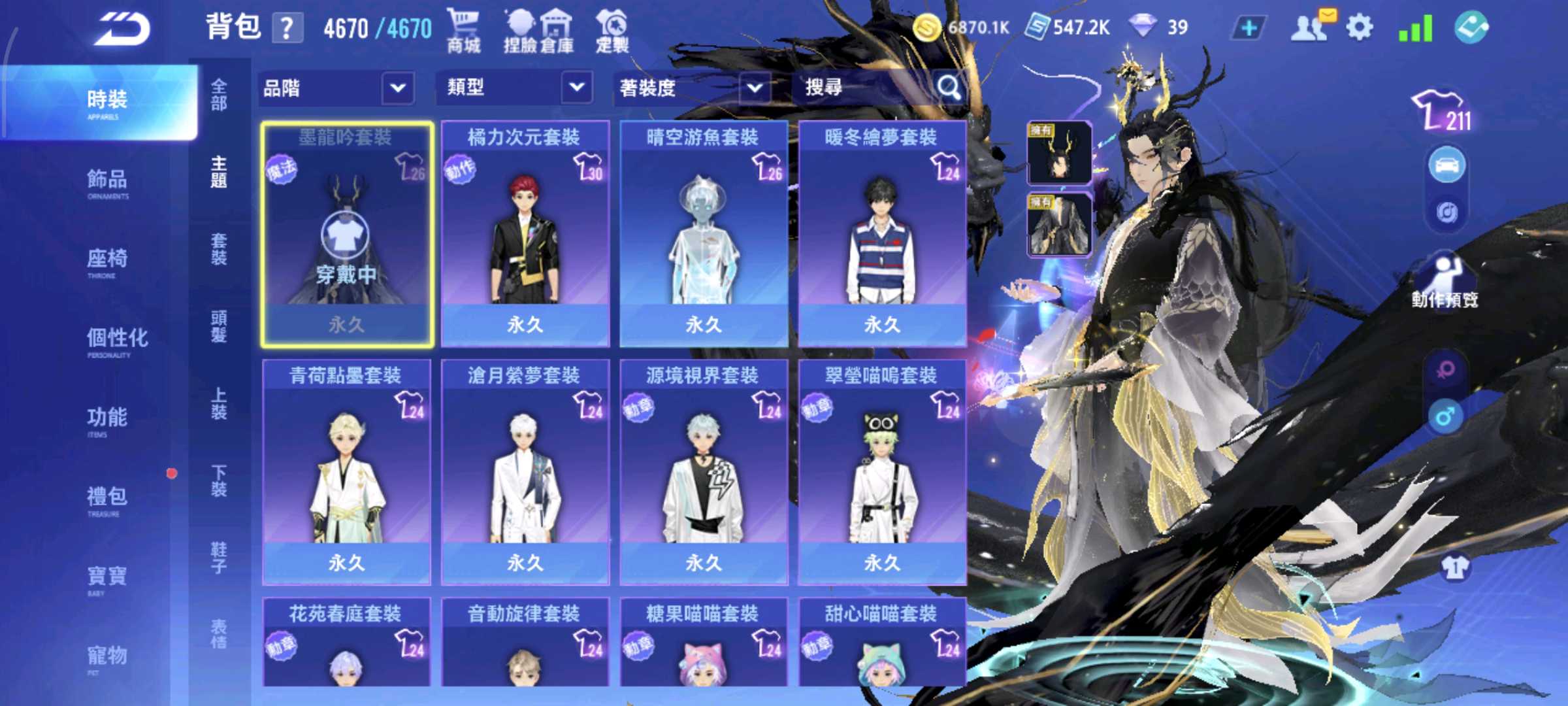 魔法套裝 男生4套+女生1套