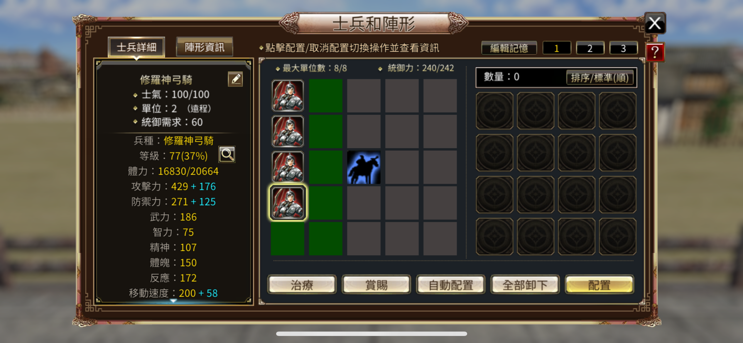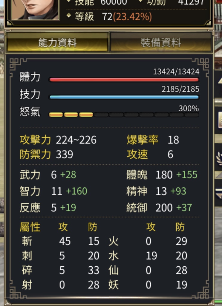 72等軍師 基本技能都有、 沒吞近戰。