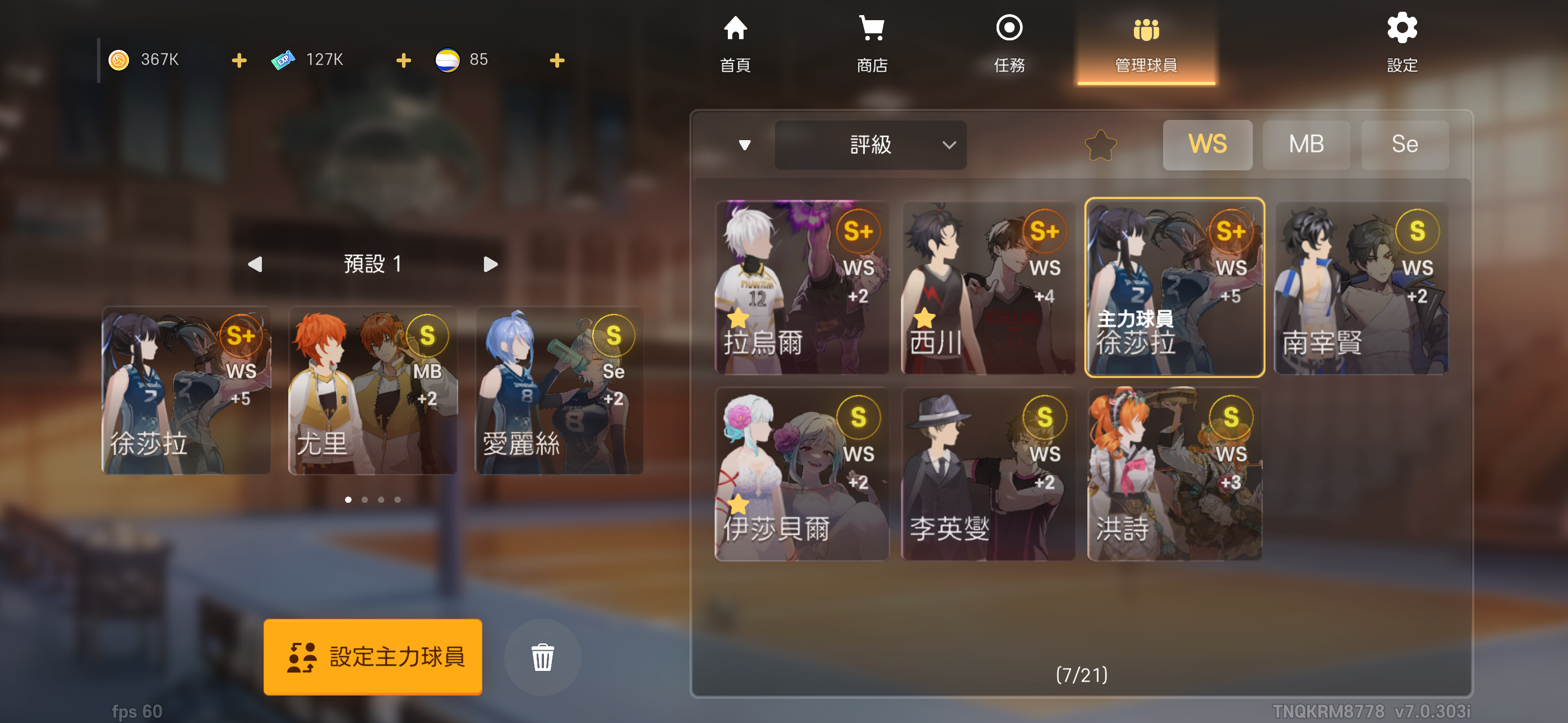 帳號 【9999等】 徐沙拉+5 西川+4 勞爾+2 17隻S 每隻角色命數看圖片或底下 價格私訊詢問