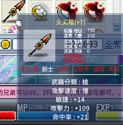 +7火尖槍 14敏21命109攻
