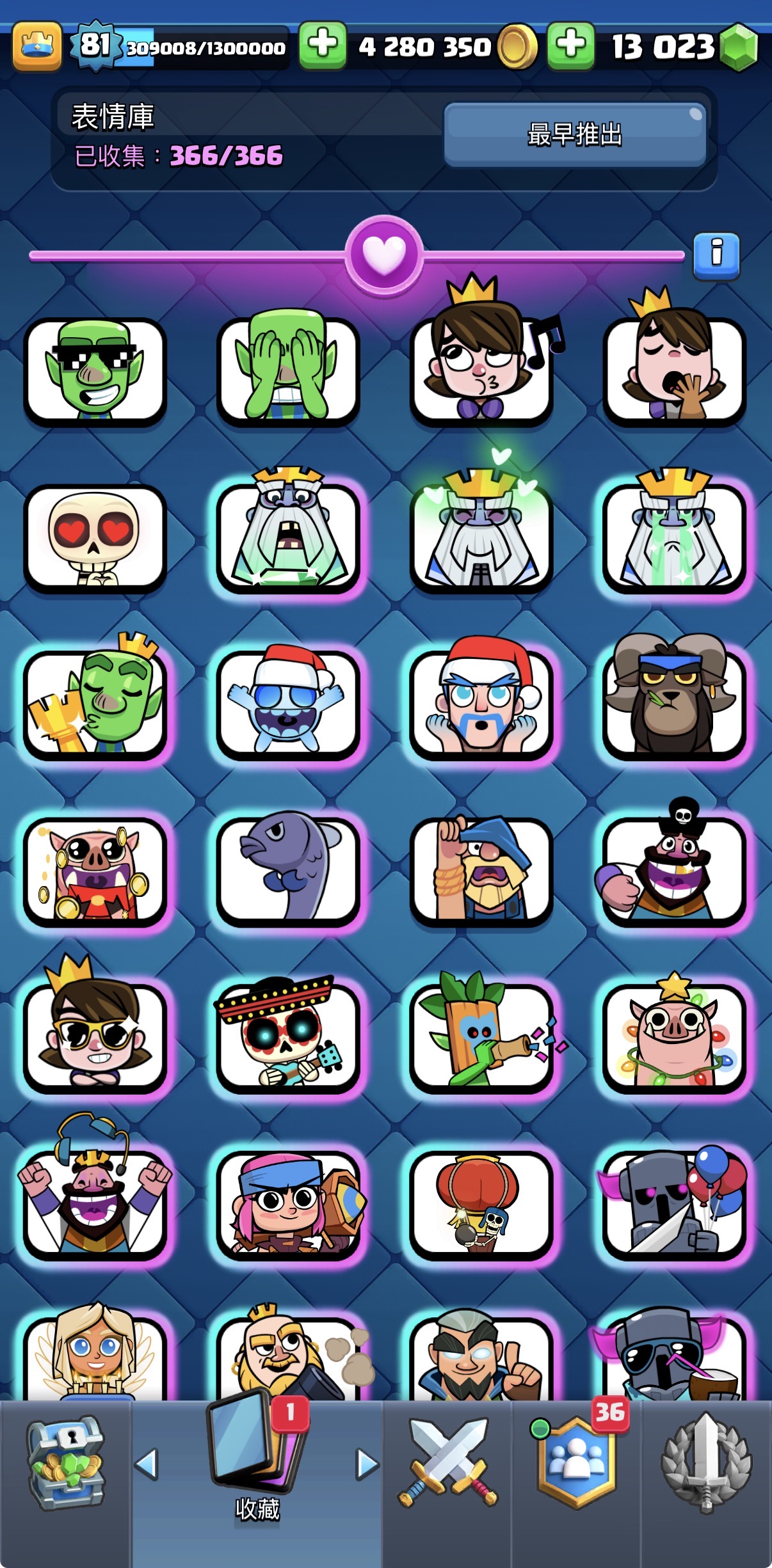 【81等】 頂帳號 全進化 全15 366表情 20勝徽章 擦獎杯表情 多資源 多寶石 金幣
