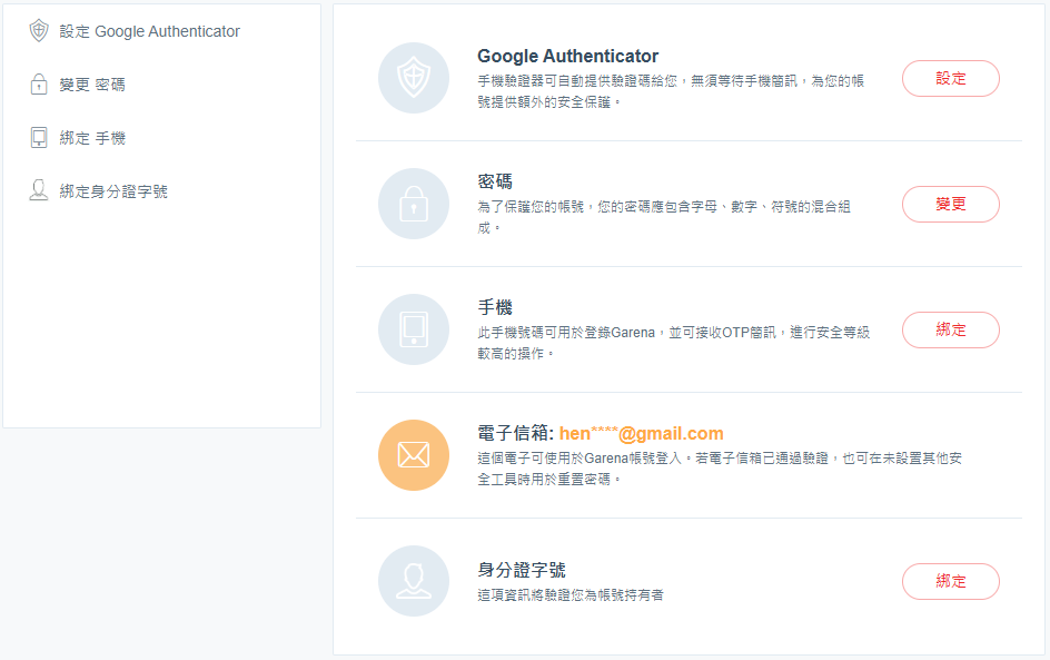garena、無法換綁