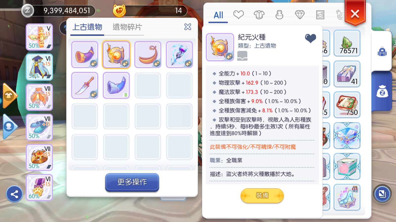 七星職業 艾斯 雷神 貓神 小當家 龍息