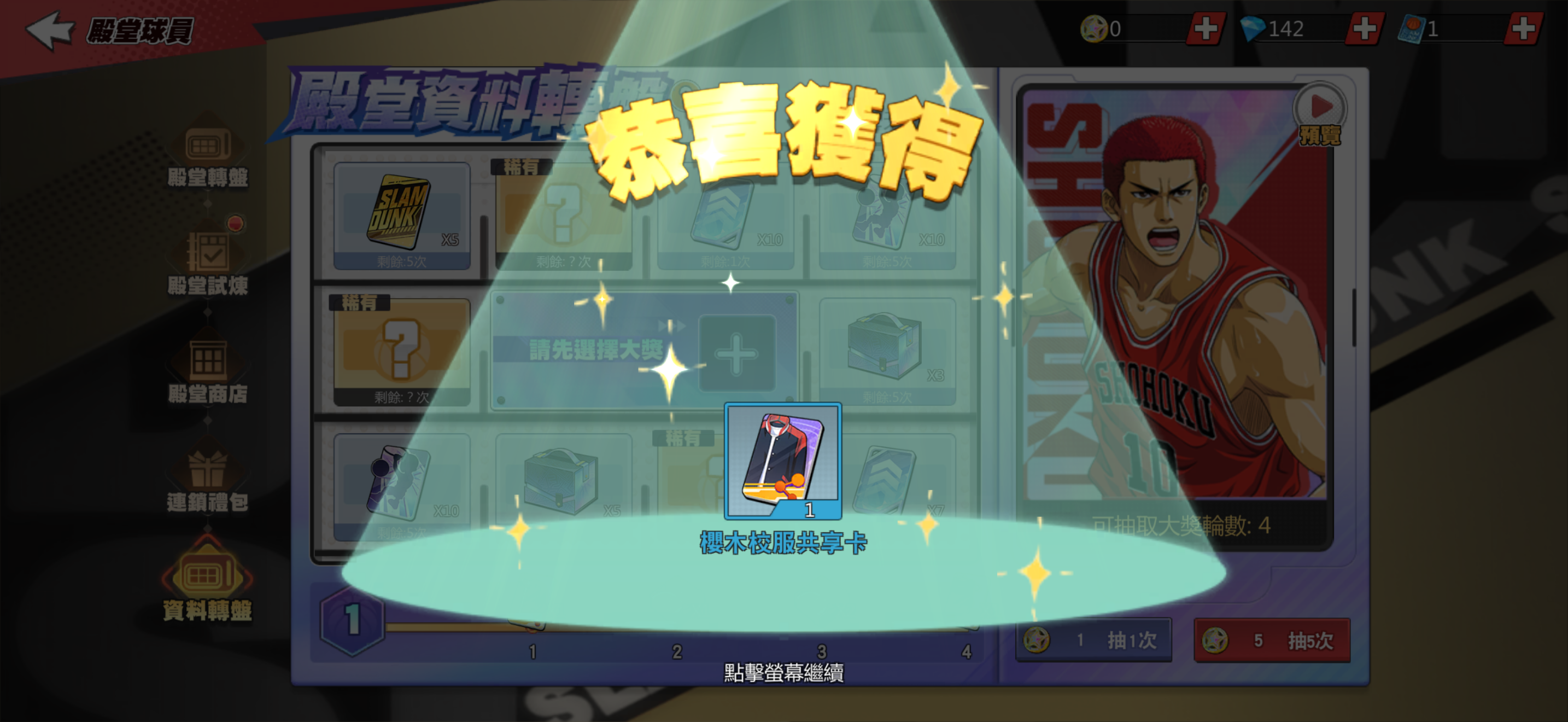 新增殿堂櫻木 拉到S未點技能