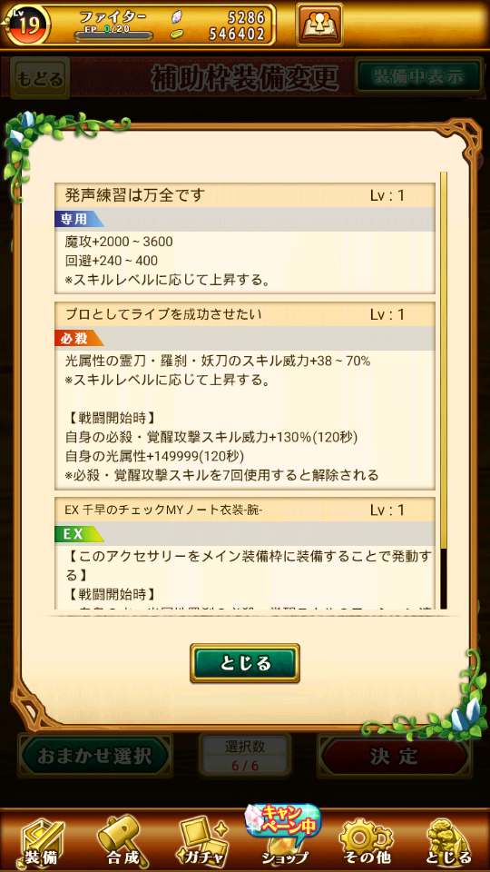 帳號內還有很多其他究極裝備可以放輔助欄