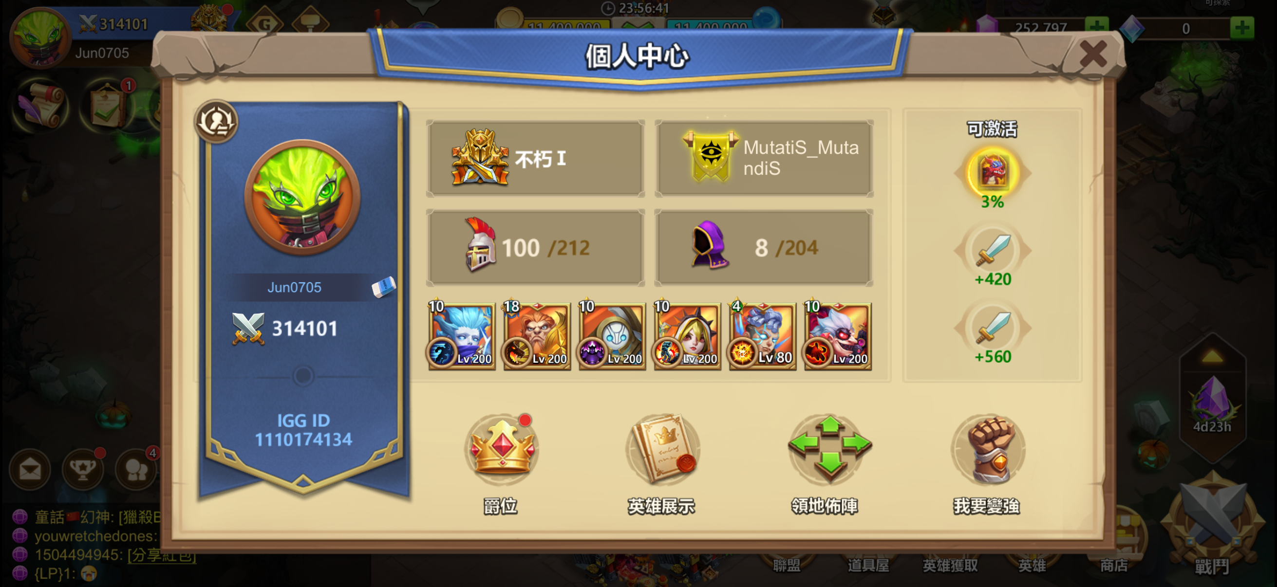 戰力31萬4千多沒儲值的話玩一輩子都玩不到的高度!