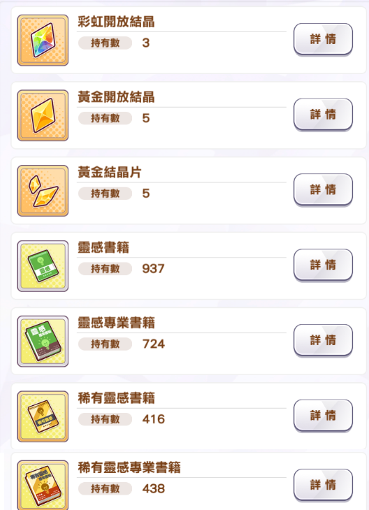 馬全部覺醒lv5 常用馬靈感都是升滿的 靈感書數量也很充足