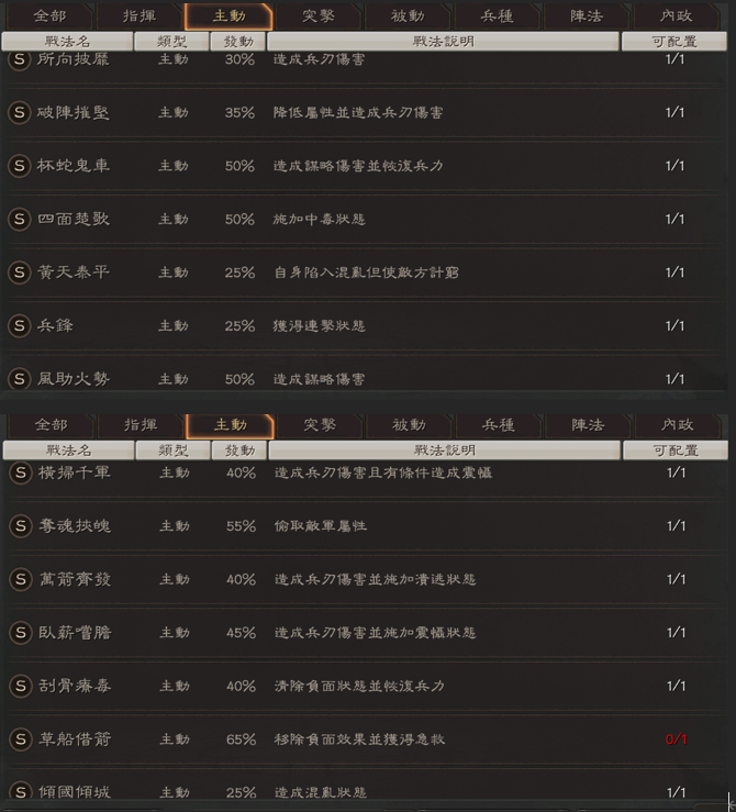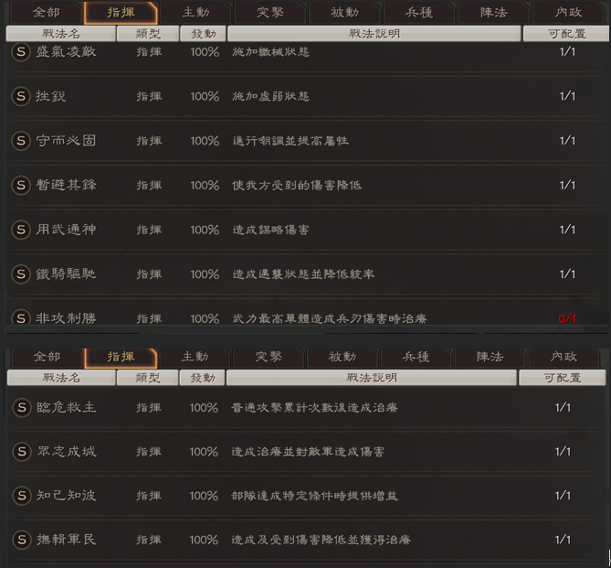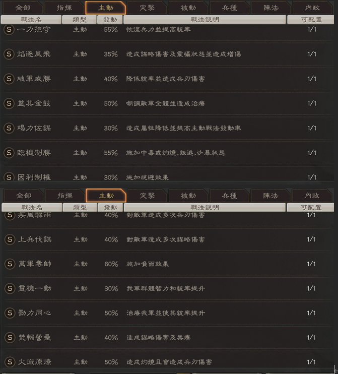 戰法齊全 重要的都有 上兵 眾志 草船 同心 靈機