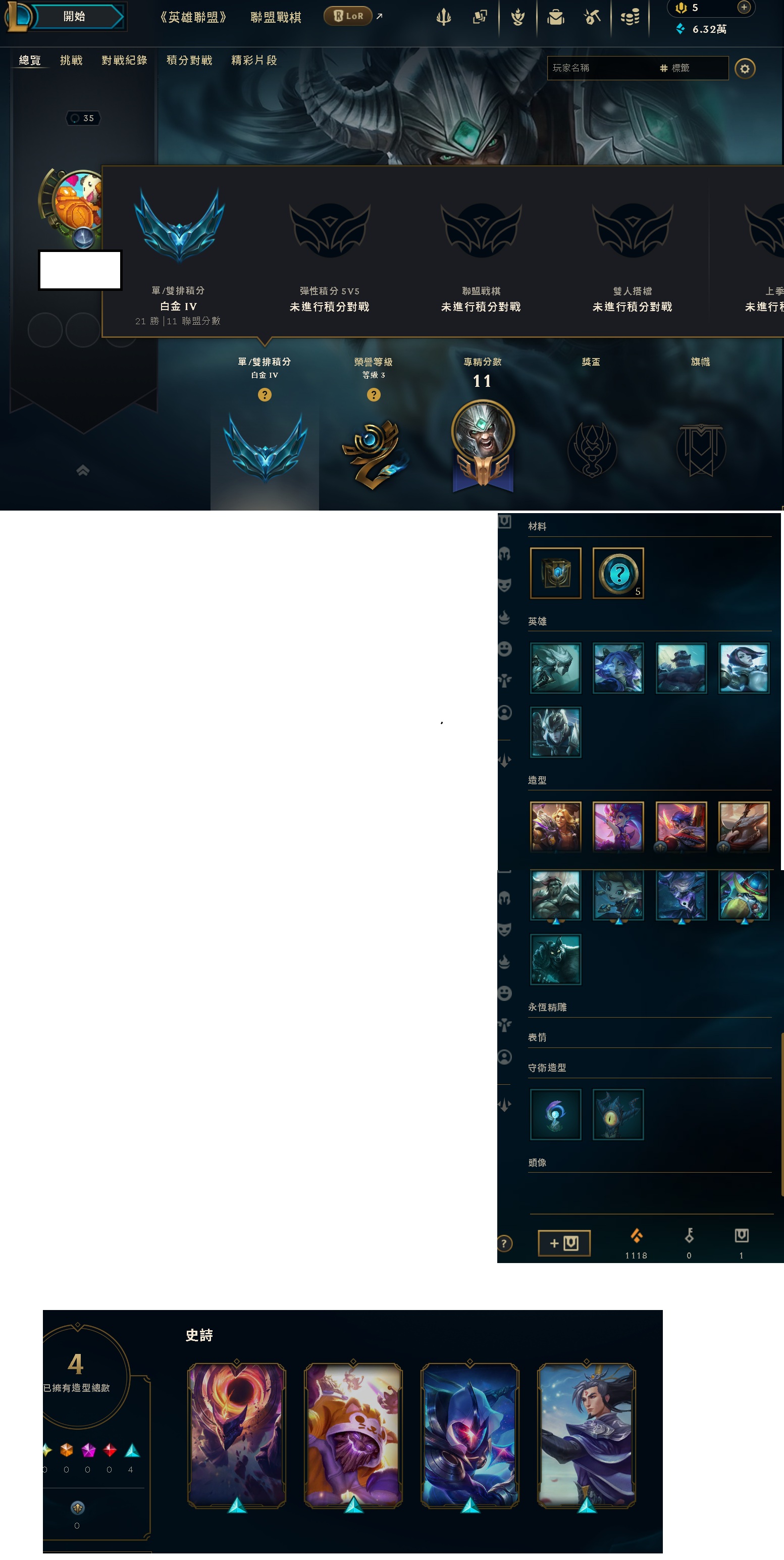 帳號 【35等、白金、33英雄、4造型】 全未認證 高隱藏 白金簡帳(6.32萬藍粉)只要1100