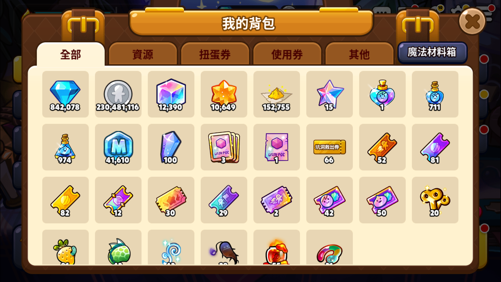 84萬鑽,1.2萬彩虹方塊,寶物點數4萬可供兌換