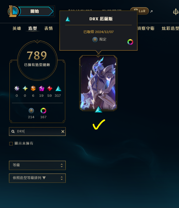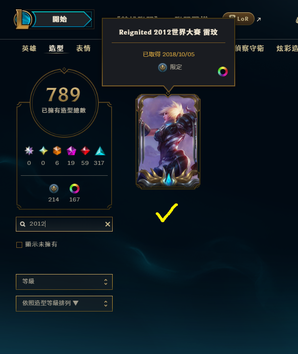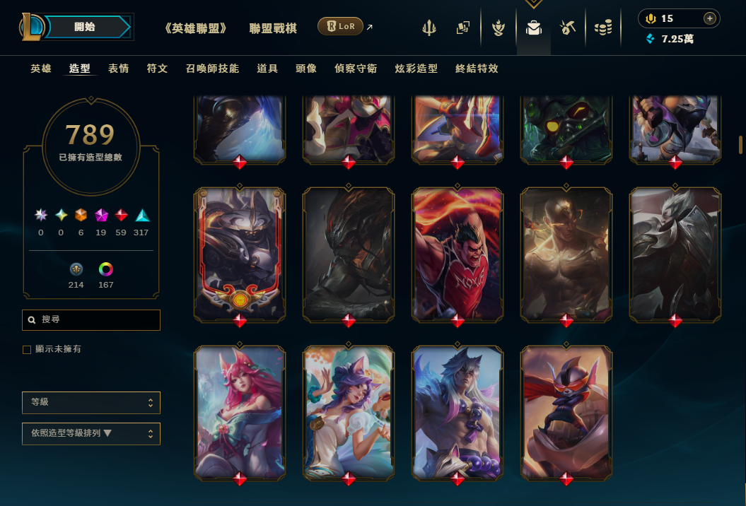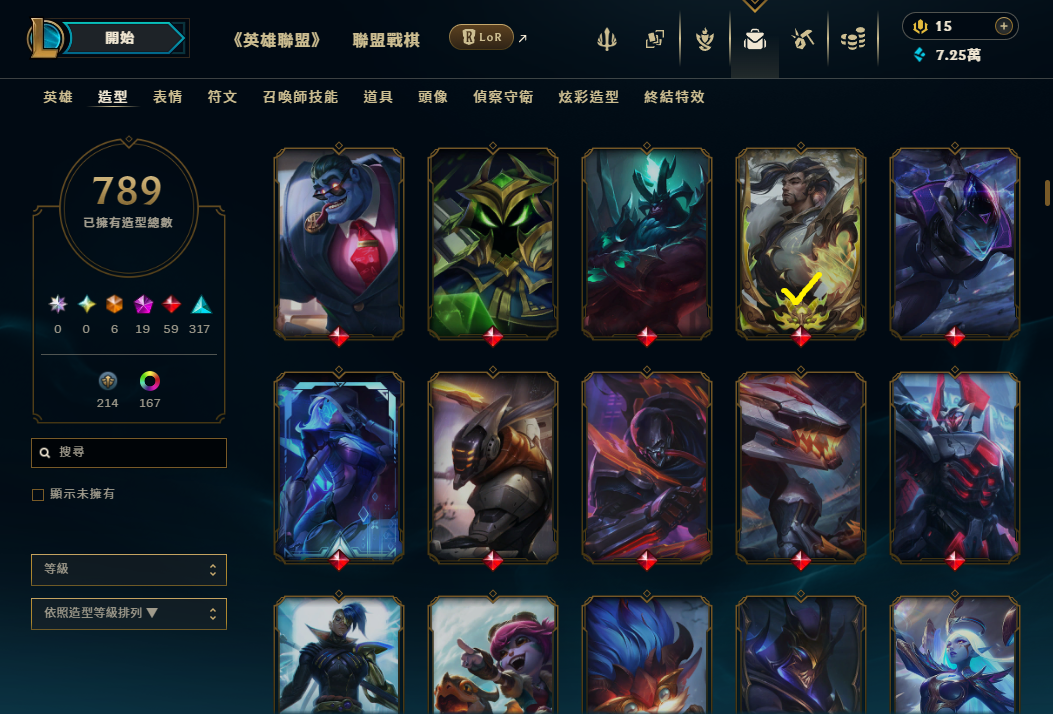 帳號 等級969 + 造型789個 + 全英雄 + 超豐富神話戰旗