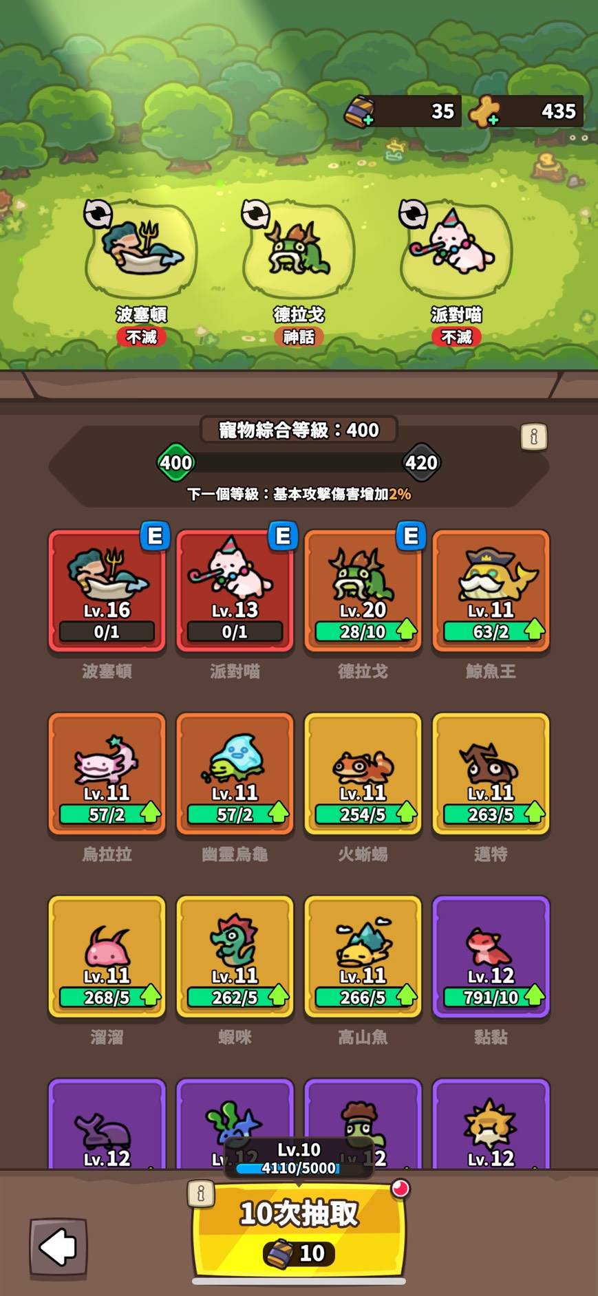 寵物綜合等級:LV400(波賽頓LV16 派對喵LV13 龍LV20)