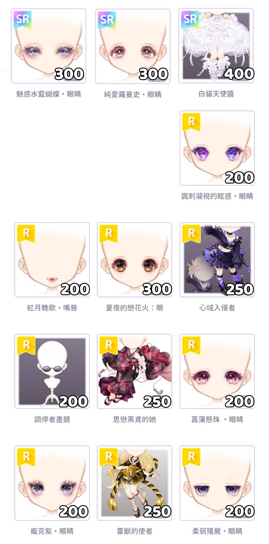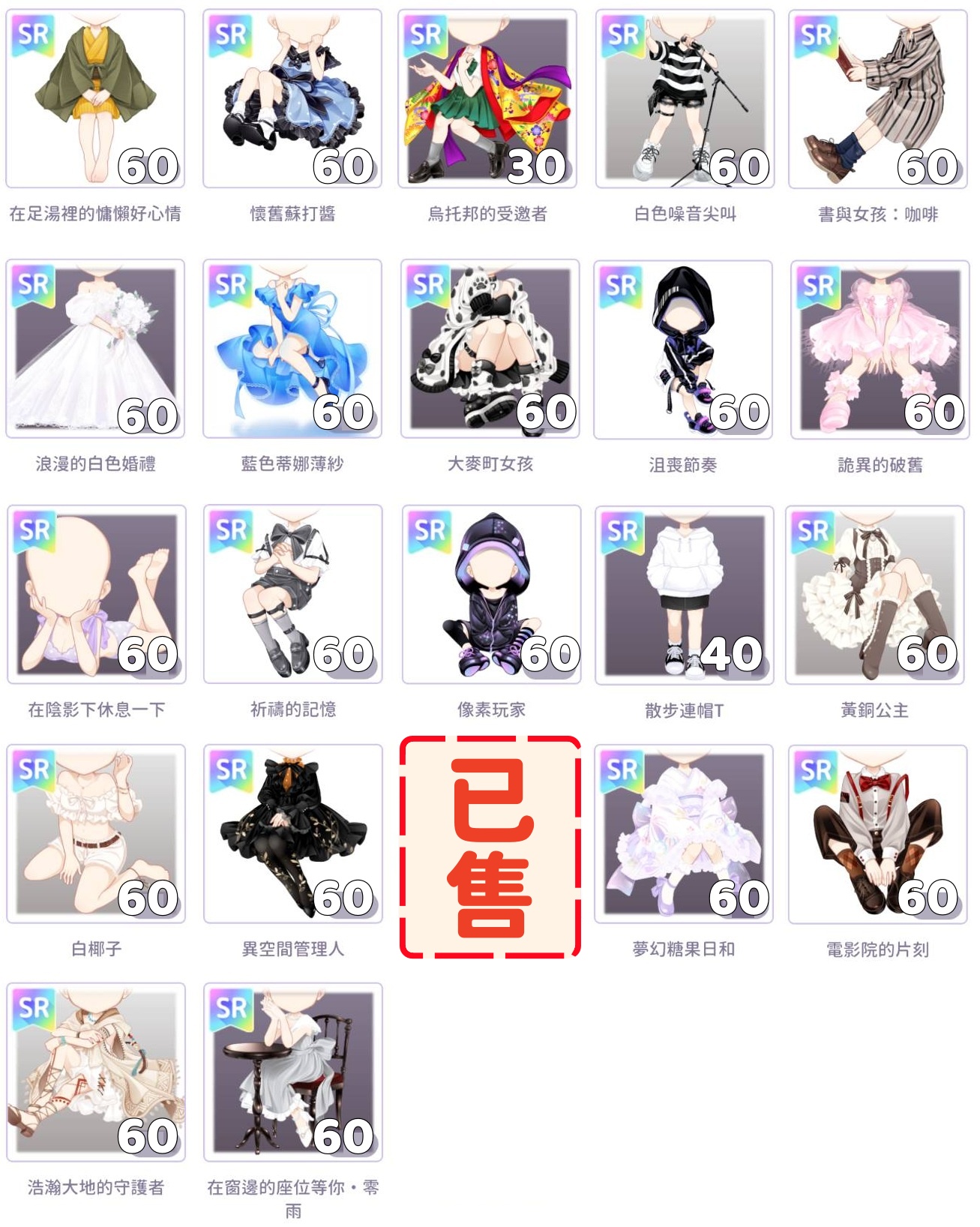 道具 女生免費SR服裝/部分付費/獎勵(免費)星星